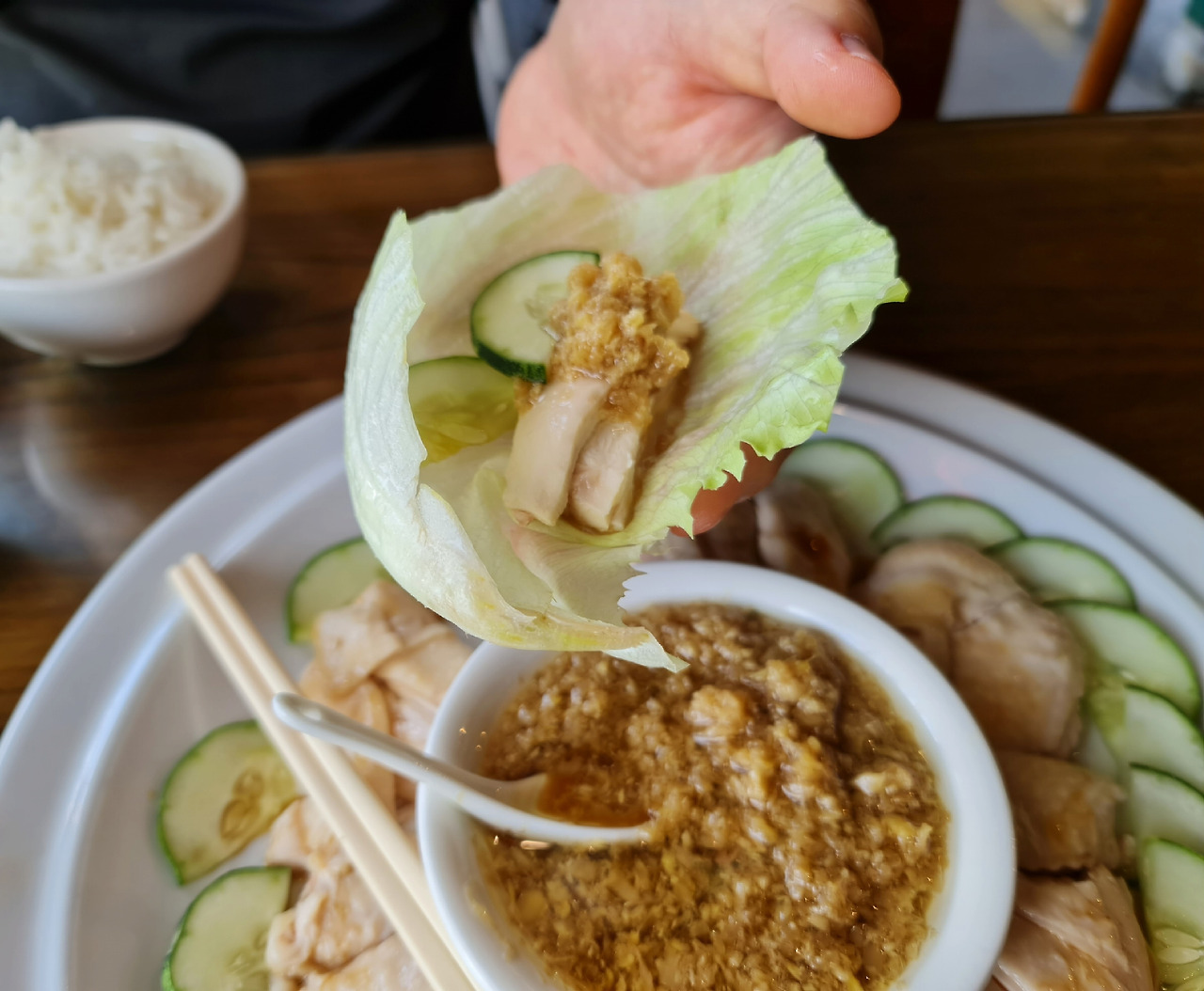 자주 먹는 외식 메뉴 중 하나는 삼수이 진저 치킨(Samsui Ginger Chicken)이다. 이 음식은 아직 한국 관광객들에게 많이 알려지지 않은 것 같다. 삼수이 진저 치킨은 1930년대 싱가포르 건설 초기, 중국 광둥 지방에서 일자리를 찾아온 삼수이 여성들이 정월 초하루에 먹던 명절 음식이다. 한약재를 넣어 끓인 육수에 닭을 삶아 살만 발라내고, 진저 소스(생강 소스)와 함께 먹는다. 닭은 부와 명예를 상징하고, 생강은 몸을 따뜻하게 해 주기 때문에 삼수이 여성들이 건강을 위해 먹었던 음식이라고 한다(참고 자료: