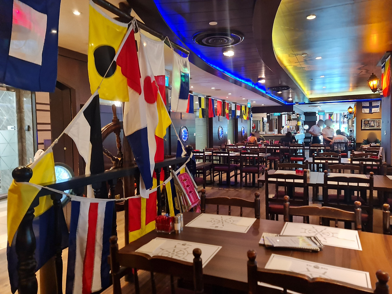 19년 전에는 어둑어둑한 조명이었는데, 내부 인테리어를 바꿔서 분위기가 밝아졌다. 해상 신호기, 조타기 등으로 장식해 놓았다.
