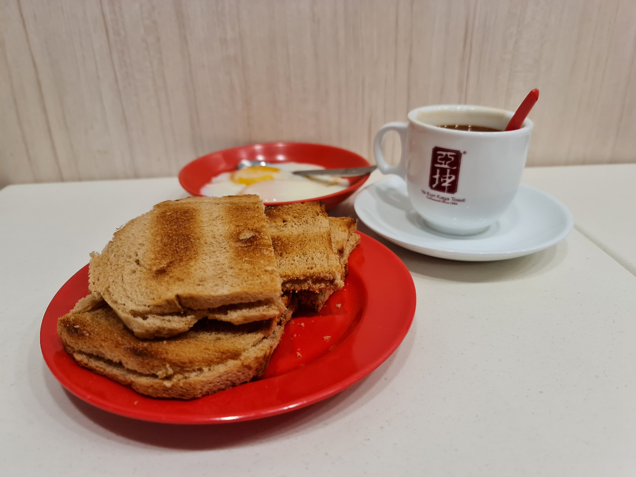 여유가 있는 아침에는느긋하게 앉아 카야 토스트 세트를 먹는다. 수란 두 개와 카야 토스트 네 조각, 커피 한 잔으로 구성되어 있는 Set A는 $4.80(4,300원, 2022년 3월 기준)인데, 가벼운 아침으로 먹기에 좋다. 싱가포르에 온 지 얼마 되지 않았을 때는 흰자가 몽글몽글한 수란을 잘 먹지 못했다. 그러나 용기를 내어 싱가포르 사람들처럼 수란에 간장을 조금 넣고 후추도 조금 뿌린 후 작은 스푼으로 떠먹어 보니 생각보다 맛이 좋았다. 수란에는 라이트 소이 소스(Light Soysauce)를 넣어 먹는데, 우리나라 양조간장보다 색과 맛이 연해 조금 넣어 먹으면 비린 맛이 가시고 고소한 맛도 더 느낄 수 있다.