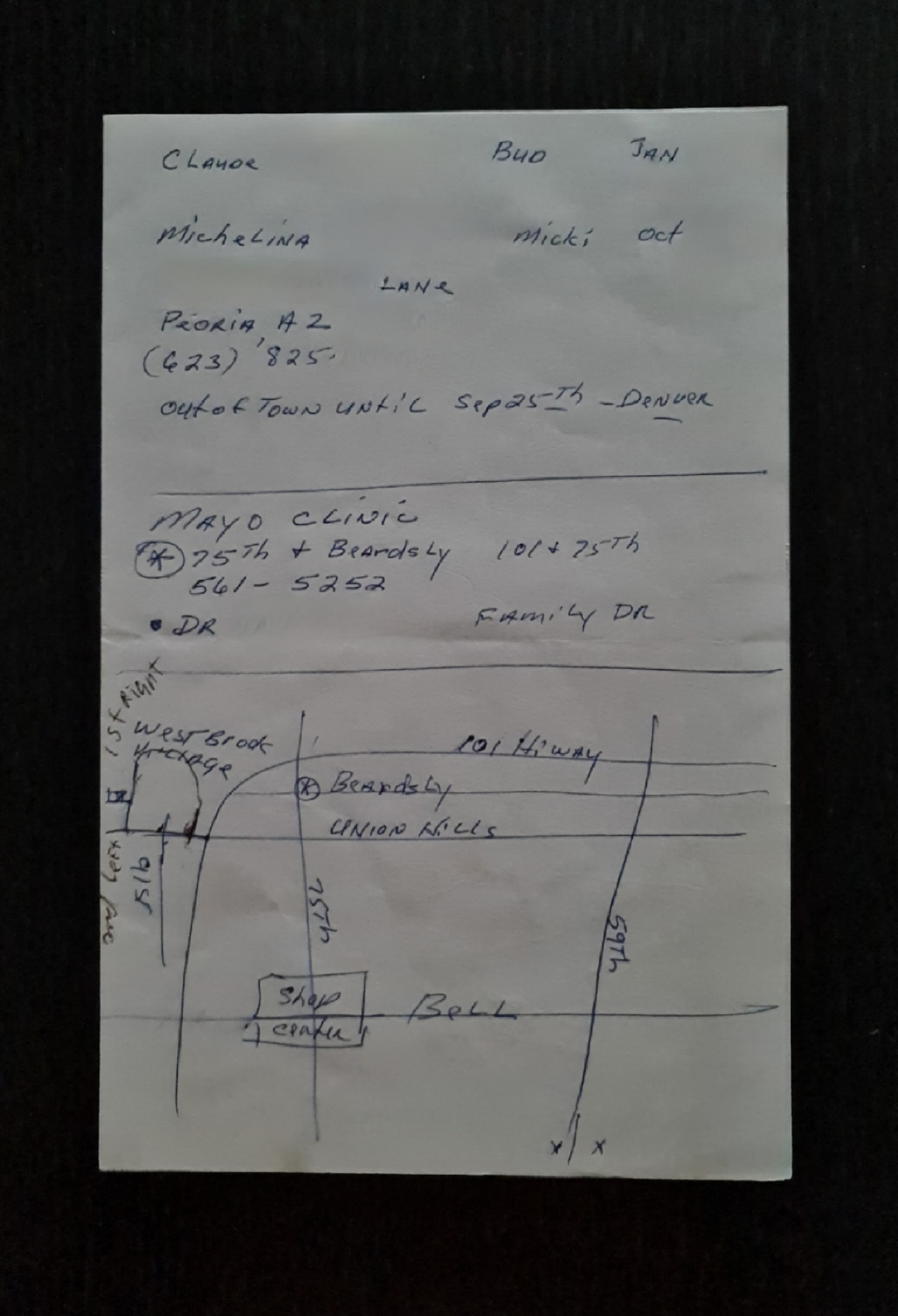 1999년에 버드 아저씨가 적어 주신 메모이다. 사진에서 몇 가지 정보는 지웠다