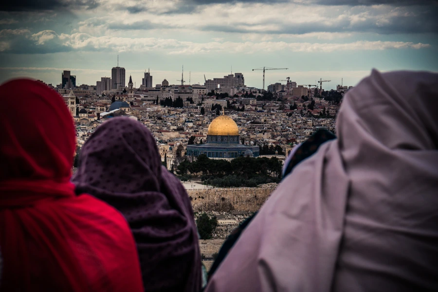 그들은 저 십자가를 향하고 있고, 그 십자가는 이슬람교의 성지 바위 돔 방향으로 자리잡고 있었다.