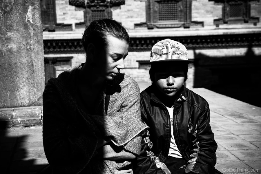 그때 노엘라와 이야기하던 소년. 이 소년은 오후 세시무렵 이 광장을 찾았을 때, 내게로 다가왔다. 14살. 이름을 물어보았는데 까먹었다. 네팔에선 흔한 이름이라는데, 내게 흔한이름은 아니지 않는가? 소년은 일종의 가이드. 길거리를 돌아다니며 관광객에게 다가가 이 곳을 소개시켜줄테니 얼마간의 돈을 달라는 관광지에서는 흔히 볼 수 있는 아이였다. 다만 여느 아이들보다 말빨이 좋았고, 친화력도 높았다. 한마디로 영리했다. 물론 나는 가이드를 대동하는 유형의 여행자가 아니기에 가이드 보다는 소년의 삶에 대해 많은 질문을 했다. 좋아하는 사람은 있냐고. 좋아하는 사람이 있는데 페이스북으로 고백했단다. 내가 그건 좋은 고백 방법이 아니라고 했더니. 더이상 사랑에 관해서는 질문하지 말랜다. 아마도 아픔이 있었나보다. 사랑은 참 좋은것이라고 마음에서 우러나는 이야기를 해줬는데 소년은 지루해한다. 녀석도 참.