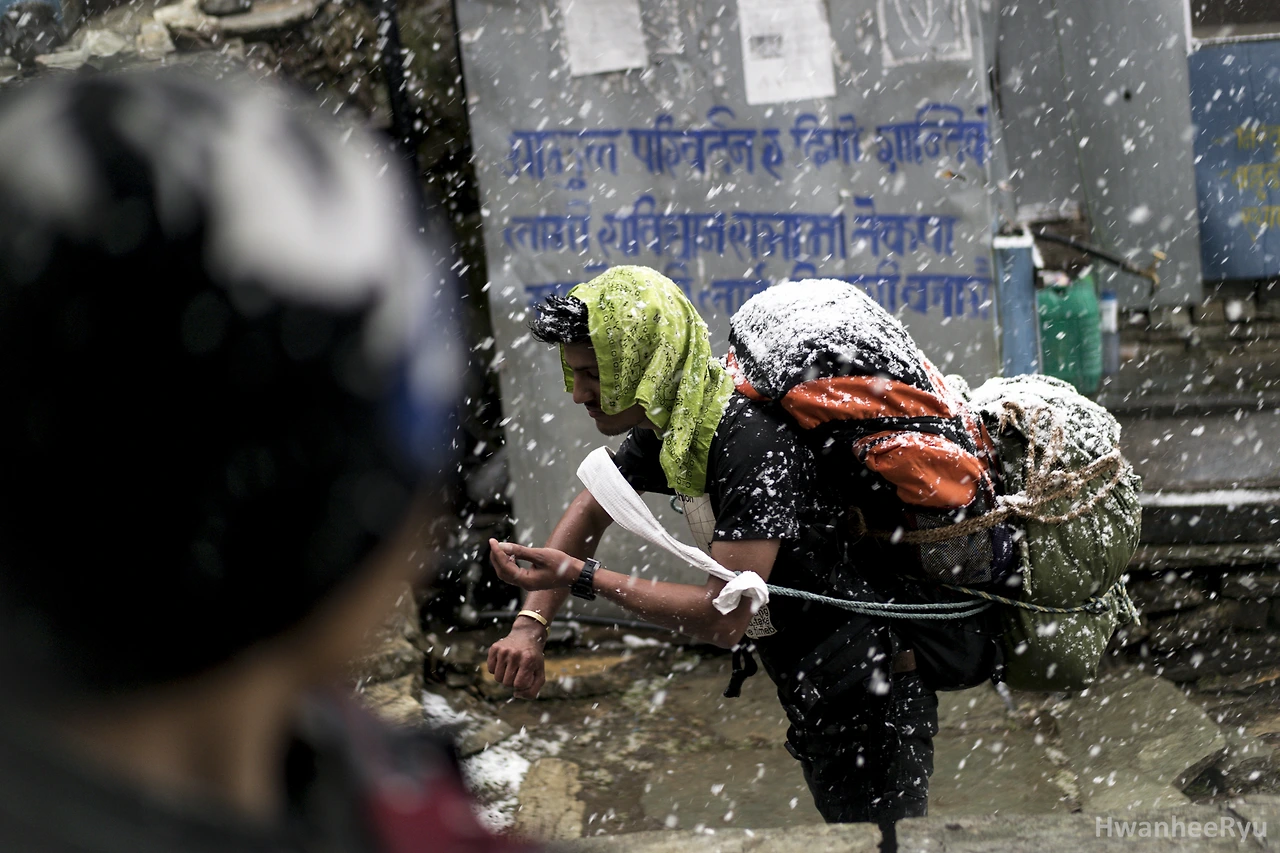 눈은 거추장스럽기만 하다. 산과 산의 경계가 희미해지는 폭설에, 그 장관에 연신 감탄사를 내뱉으며 풍경을 훑는 여행자들 속에서. 짊어진 배낭에 소복이 쌓이는 하얀 무게마저 원망스럽다. 내가 짊어진 것은 내 것뿐이 아니었는데, 더불어 내 즐거움이 아닌 것들이 나를 향한다. 너는 쉬운 듯 멈췄다가 다시 발을 내딛었다가 고개를 돌려 오른 길을 살핀다. 나는 바닥을, 형체도 없이 흩어져가는 남은 시간만을 초조하게 지켜볼 뿐이다.