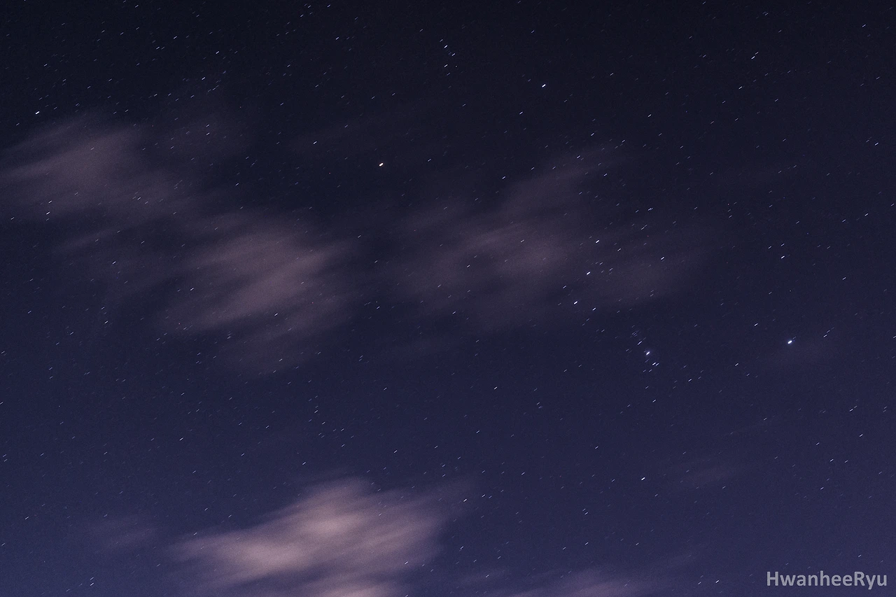 별은 구름 사이사이에서 선한 빛을 발한다.맑은 밤하늘이 반가워 사진기를 가지러 간 사이