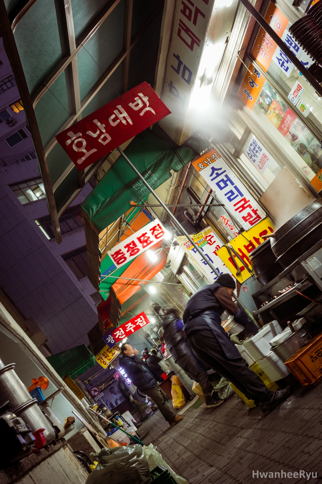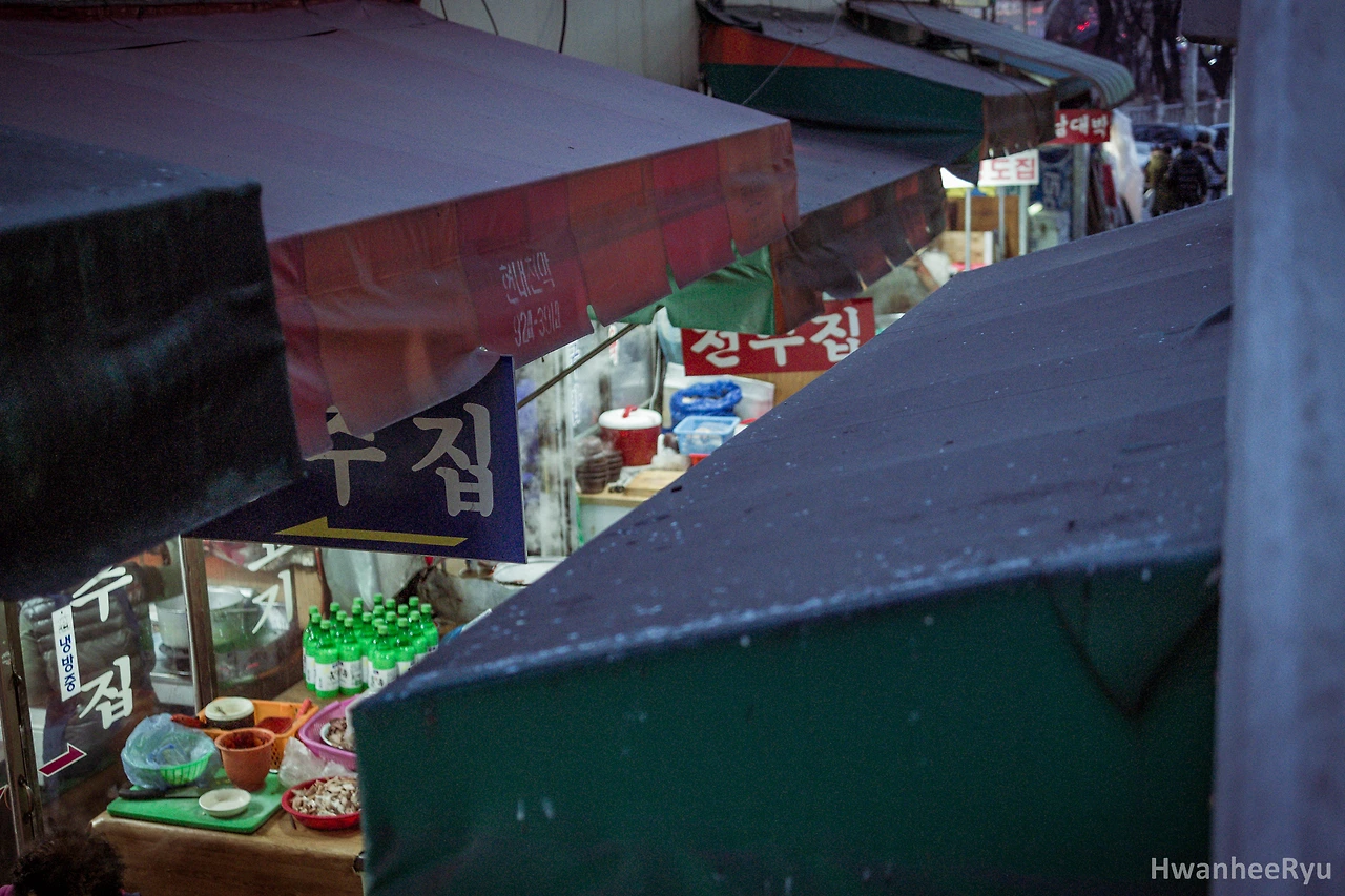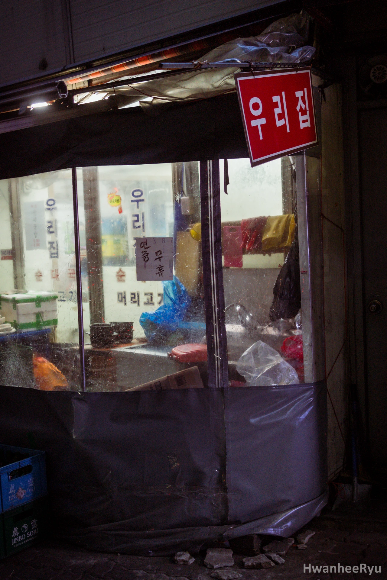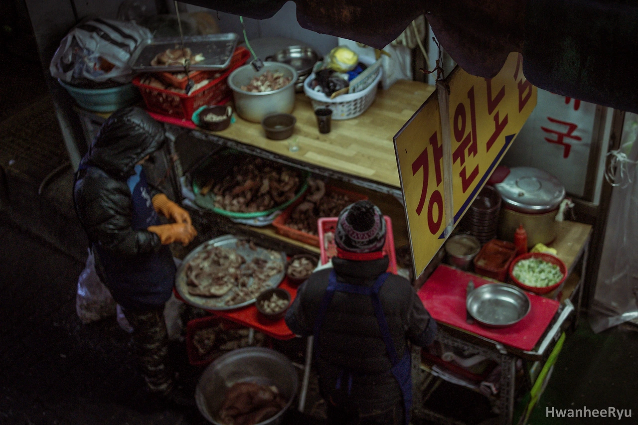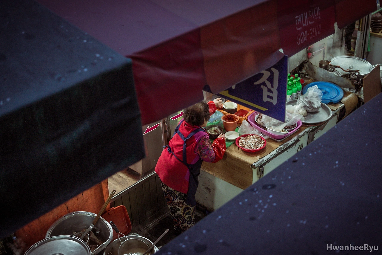 수도 서울은 '상경'의 대상이다. 지금은 조금 희미해졌지만, 산업화 시대만 해도 "서울 좋다더라", "서울에 가면 일자리가 있다더라"하며 청운의 꿈을 안고 무작정 서울로 상경한 이들이 많았다. 성공하지 않으면 다시 고향으로 내려가지 않겠다고 다짐했던 이들에게 서울은 기회의 땅이기도, 좌절의 땅이기도 했다. 그 뱉어낸 말 때문에, 경제적 여건 때문에, 그리고 바쁜 일 때문에 고향에 대한 그리움을 안고도 고향에 가지 못한 이들을 달랬던 것은 아마도 저 따뜻하고 저렴한 국밥 한 그릇이었을 것이다. 그 국밥 한 그릇에 고향을 담아내고자 이 골목의 상호들은 죄다 지역을 담고 있다. 충청도집, 전주집, 광주집, 강원도집... 그리고 그 끝엔 무엇이 있는 줄 아는가?
