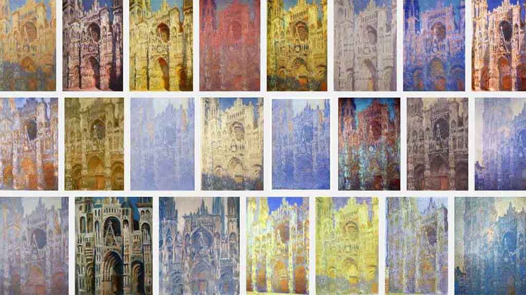예술에서 리얼리티가 무엇인가 의문에 마침표를 찍은 작품이 클로드 모네의 연작 <루앙 대성당 연작>이다. 모네가 같은 장소에서 바라보고 있음에도 불구하고, 같은 하루라도 시간에 따라, 다른 날 혹은 다른 날씨에 따라, 시시각각 변화하는 햇빛에 비친 루앙 대성당을 연작으로 그렸다.