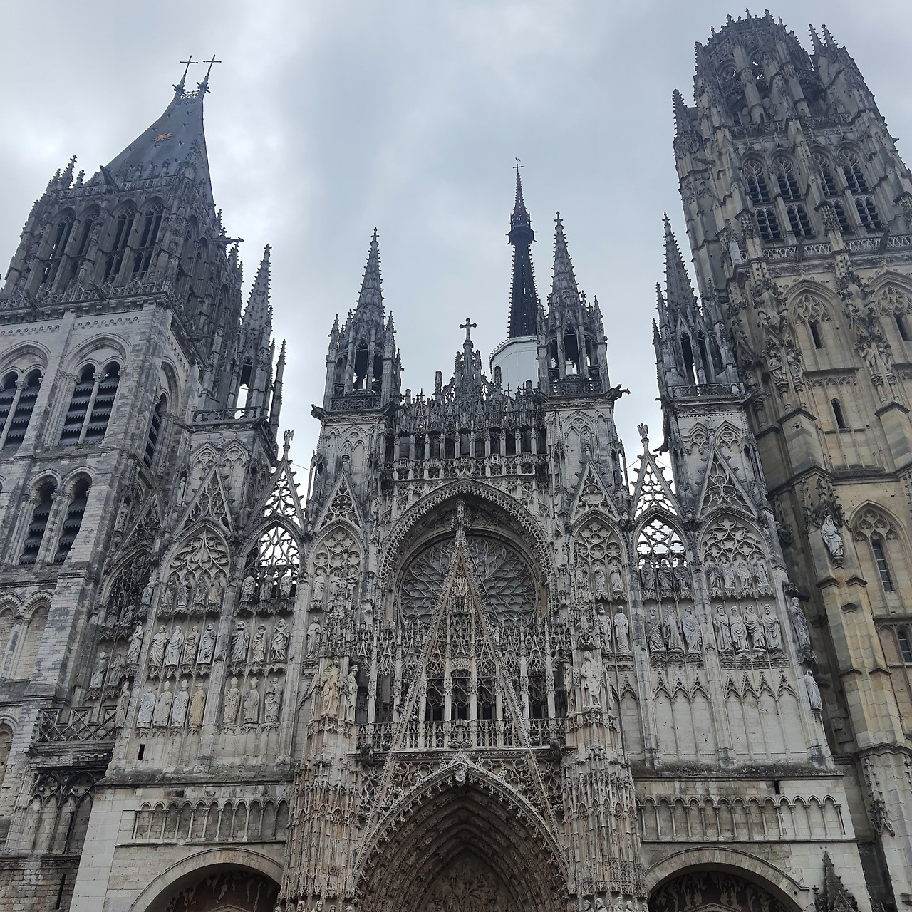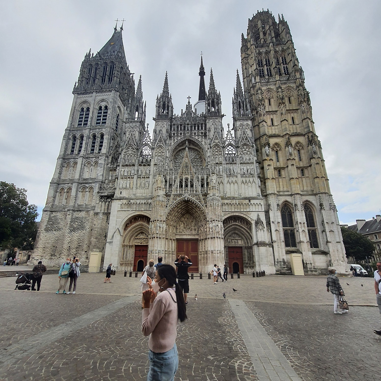 코로나 때라 다들 마스크를 끼고 있다. 파리와 가까워서 루앙에 가기가 편했다. 모네의 그림 속 루앙 대성당이 실제로 어떤 모습일지 궁금해 직접 찾았다. 루앙 대성당을 마주하고 있을 때_ 모네는 과연 어디쯤에 있었을지 대충 감을 잡아봤다. 여긴가? 저긴가? 유럽의 공간은 세월이 흘러도 늘 그 자리에 있어서 마치 양자역학처럼 내가 그때 있었고, 나는 지금 없었고, 또 다른 내가 그곳에 있을지도 모르겠다는 생각을 하게 된다. 모네는 그때도 지금도 계속 있을지도 모르겠다는 생각도 하면서 말이다.