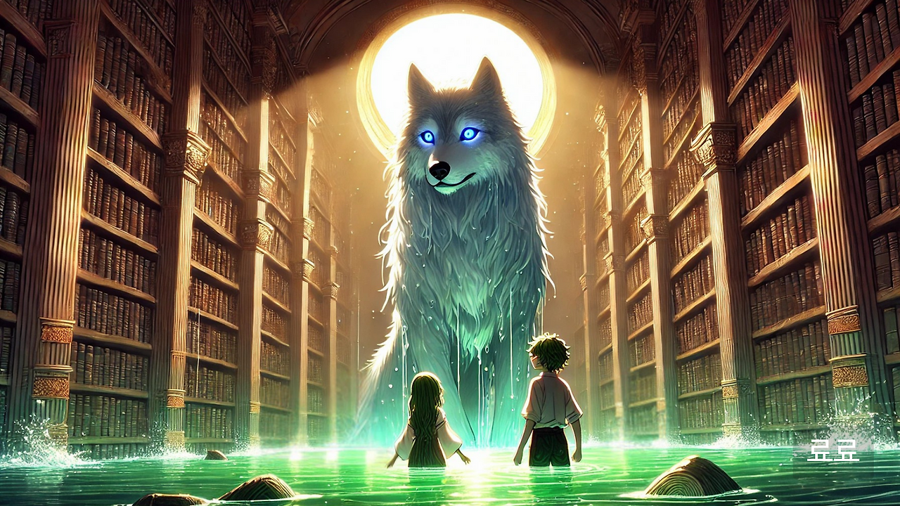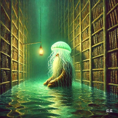 지수와 준희는 본능적으로 서로의 손을 잡았다. 도서관의 벽에 꽂힌 책들이 하나둘 흔들리더니 발끝에 닿는 것이 사라졌다. 물속에서 붙잡고 절대 놓지 않을 것처럼, 그들을 당기고 있었다. 갑자기 나타난 해파리 노인은 조용히 속삭였다. "이곳의 주인은 원래 저 워터울프였어. 사람들은 그를 두려워했어. 그래서 그들은 워터울프를 잔인하게 말려 죽였어. 그랬다고 생각했지. 하지만..." 그의 목소리는 마치 오래된 책장을 넘기는 소리처럼 낮고 느렸다.