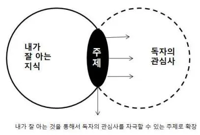 이런 말을 하면 예비 저자는 이런 고민에 빠진다. ‘나는 사람들이 궁금해할 주제에 대한 지식이 없는데 어떻게 책을 쓰지?’ 맞다. 우리는 이런 딜레마에 쉽게 빠진다. 내가 잘 알고 있는 분야는 사람들이 관심이 없고 사람들이 관심을 가질만한 주제는 내가 잘 모른다. 그렇다면 우리는 책 주제에 다가가는 방법을 달리해야 한다. 내가 잘 아는 것을 통해서 사람들의 관심 주제를 설명하는 방식이다.