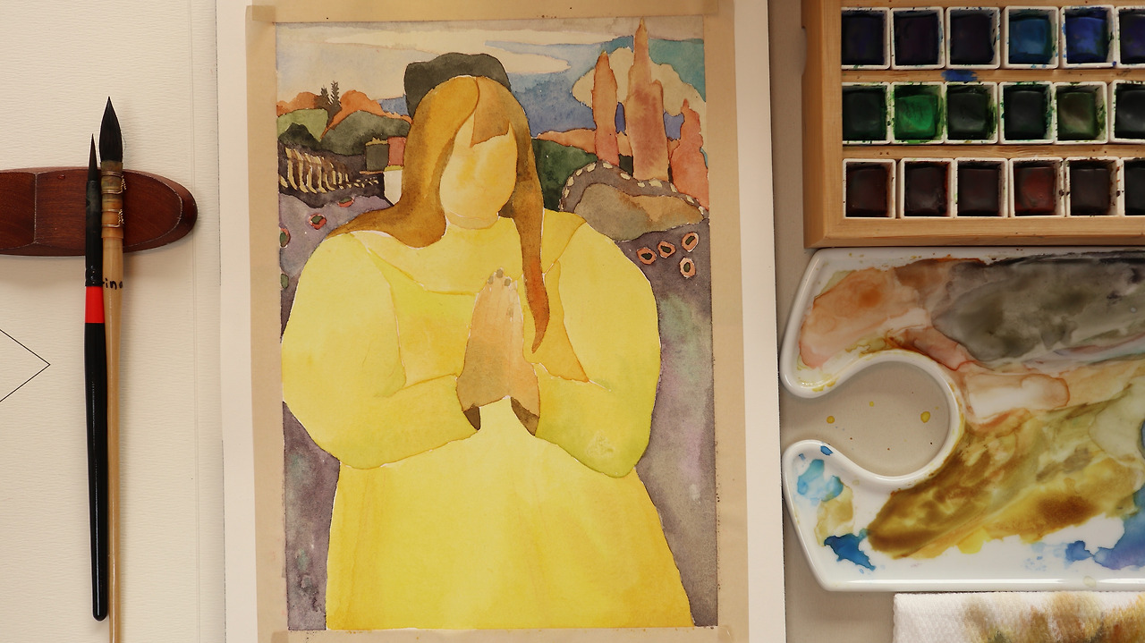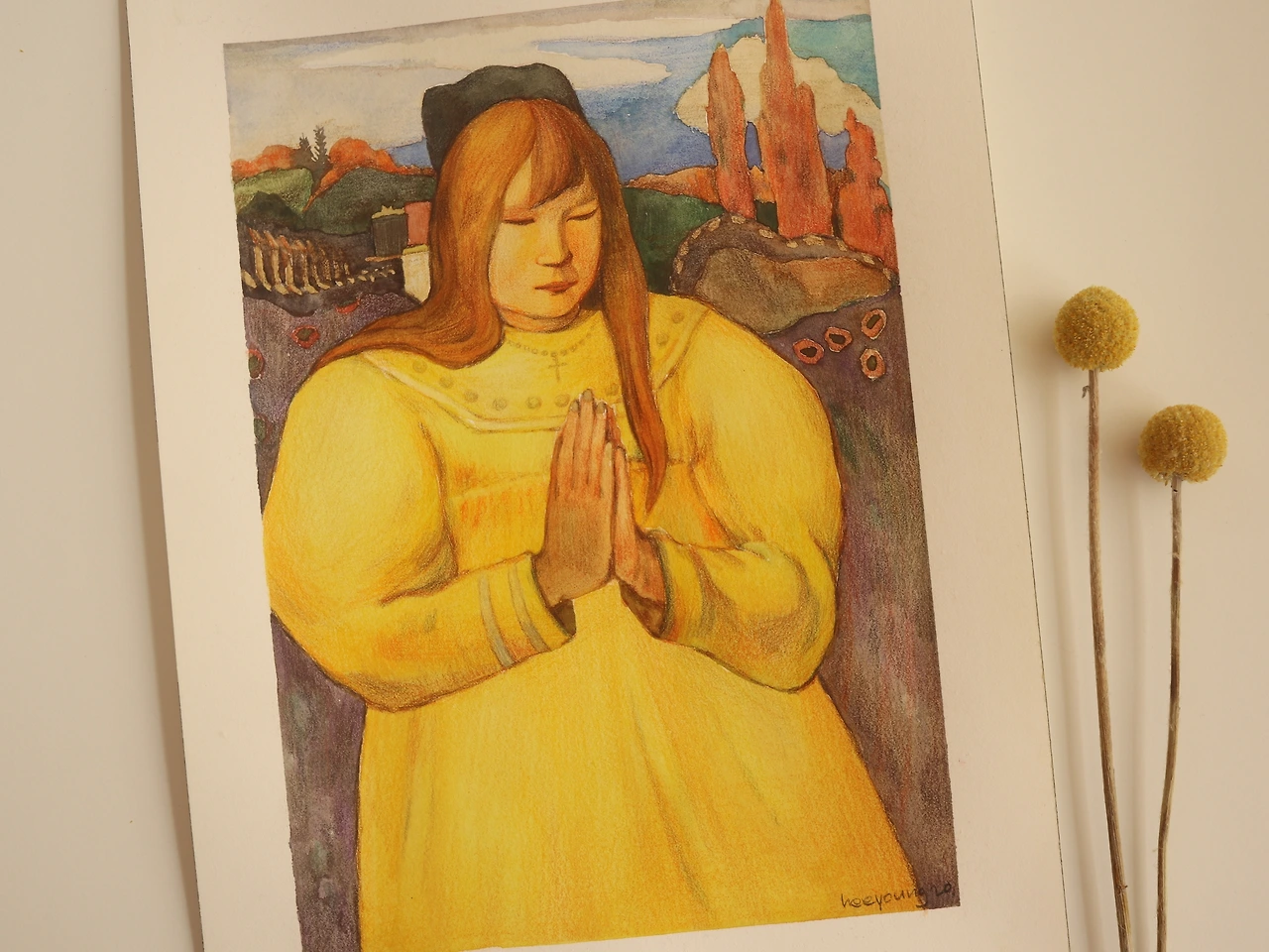 그리고 따뜻한 노란색과 기도하는 마음이 담긴 이 그림을 언젠가 그려보고 싶다고 생각했다.