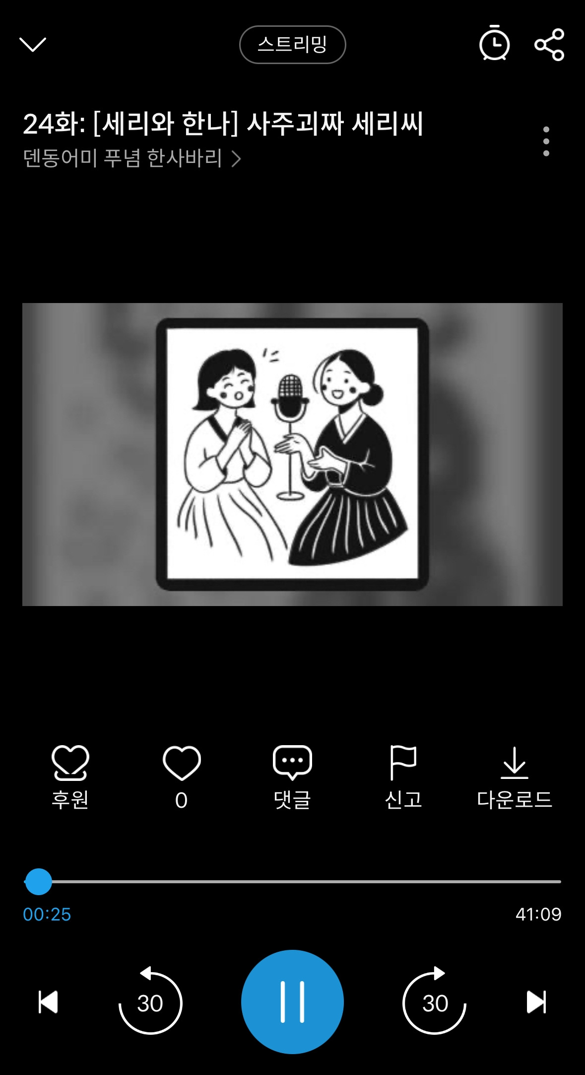 팟빵이나 애플팟캐스트에서 “덴동어미”를 검색하면 들을 수 있다.