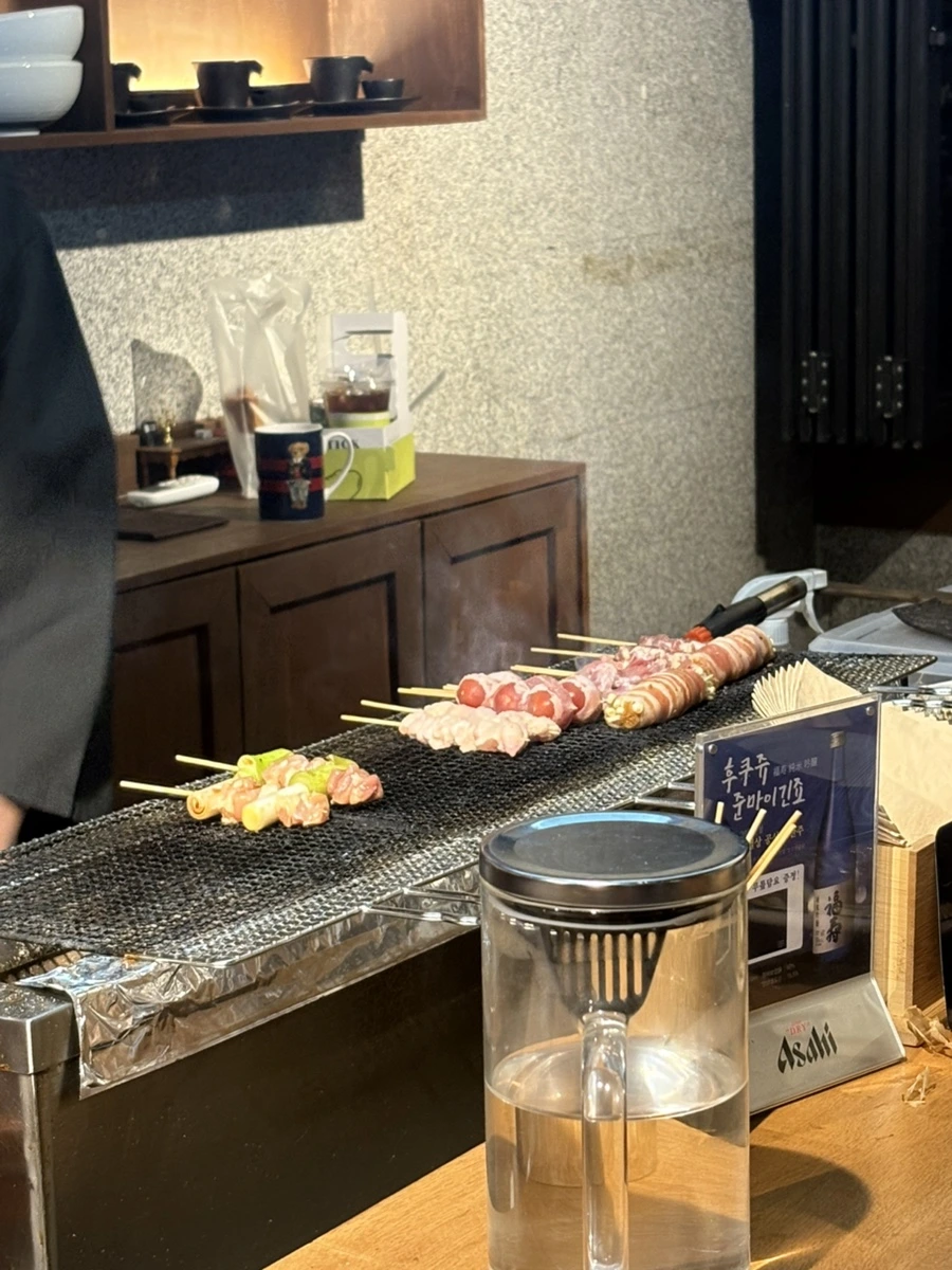 일본 사무라이 같은 사장님과 충성스러운 그의 부하들.. 의 서비스는 교토 5성급 호텔 저리갈 정도였다. 이 집의 시그니처인 꼬치 요리는 아예 사장님 전담이던데 인상 쓰고 진지하게 불 앞에 계신 모습이 마치 일본 만화책을 눈앞에서 보는 것 같았다. 근데 이제 그게 요리 만화인지 사무라이 만화인지 헷갈리는..