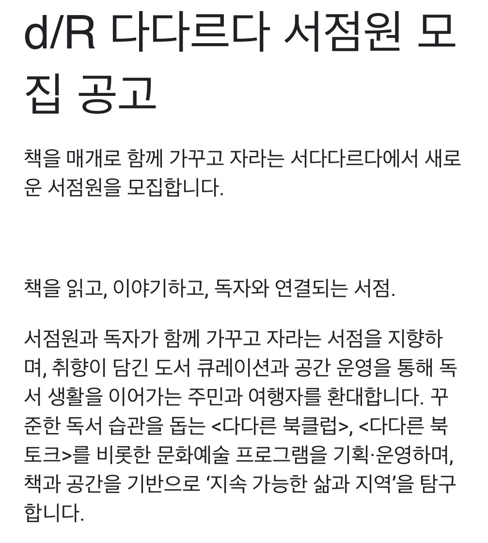 (다다르다 지원은.. 진작에 포기했다. 사장님과 대화할 일이 있었는데 서점 일하면 책도 잃고 사람도 잃는다며, 올 때마다 커피 한잔 내어드릴 테니 학교에 남으라고 하셨다.)