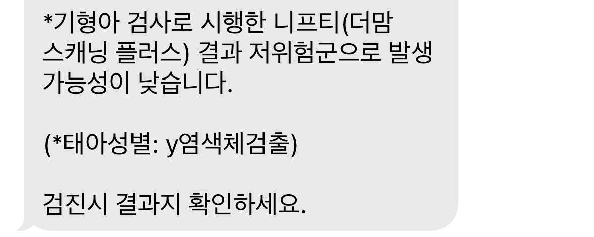 띠링- 울리는 소리가 심상치 않았다. 니프티 검사를 한 지 8일째. 결과는 문자로 알려준다고 했으니 슬슬 때가 됐다. 이번에도 스팸 메시지는 아니겠지. 설마 하며 휴대폰을 열자 두문장이 보였다.