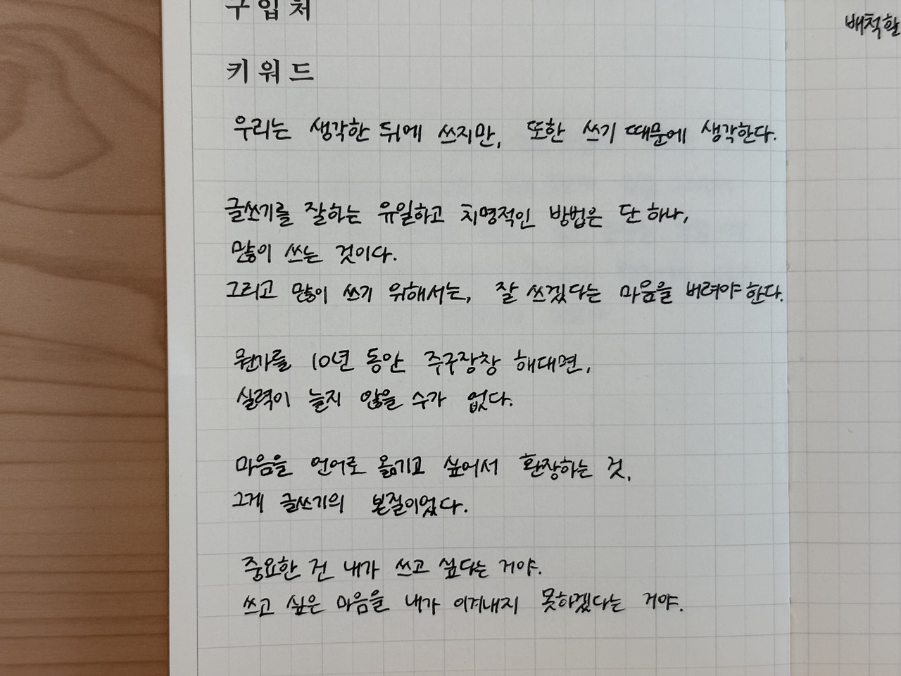 - 잘 쓰겠다는 마음을 완전히 버려야만 비로소 '잘 쓴 글'이 나온다는 명언..