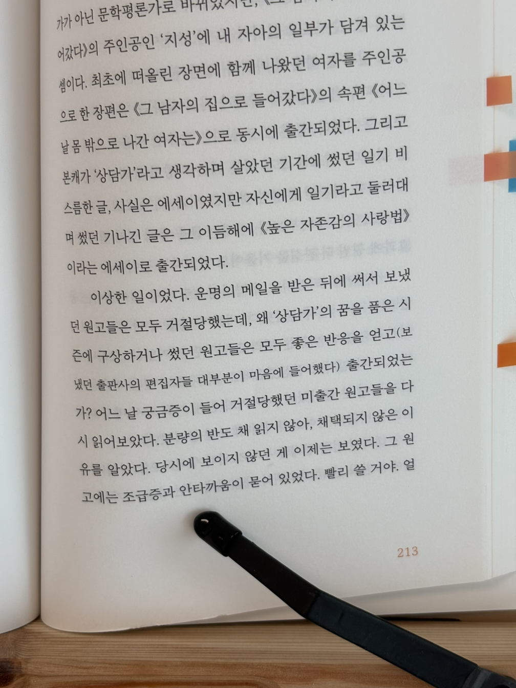 - 문장이 굉장히 깊고 명료하다. 그러면서 위로도 된다. 평소 글쓰기에 관해 작가님이 얼마나 고민하셨는지 드러난다. 솔직히 전작 <잠실동 사람들>에서는 이 정도로 감동받진 않았는데, 이 책은 모든 문장 하나하나 읽을 때마다 감탄이 나왔다. 이렇게 초기작에 비해 나날이 발전하는 작가들이 있다. 등단하고도 자신을 끊임없이 갈고닦는 게 대단하다.