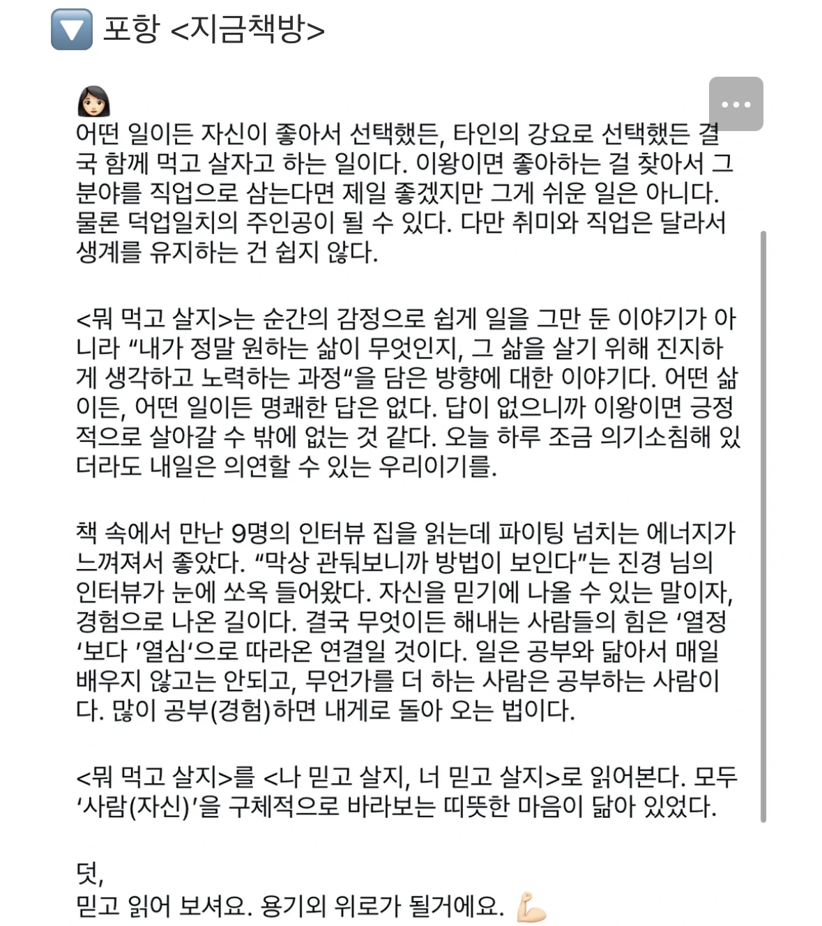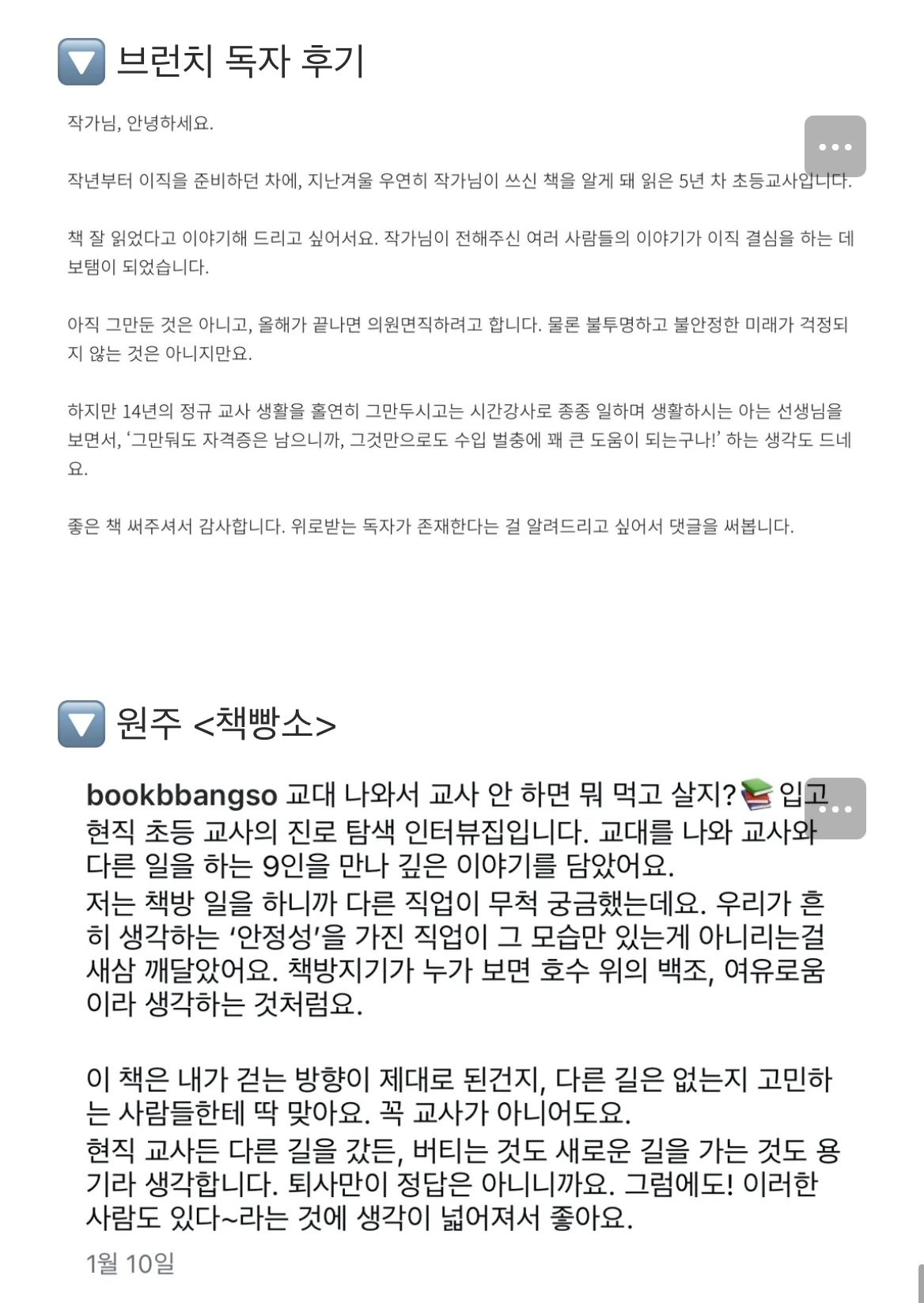 공감하며 읽을 수 있는 책입니다. 퇴사, 이직 관련 유익한 정보는 물론이고 따뜻한 용기와 위로가 담겨있어요.
