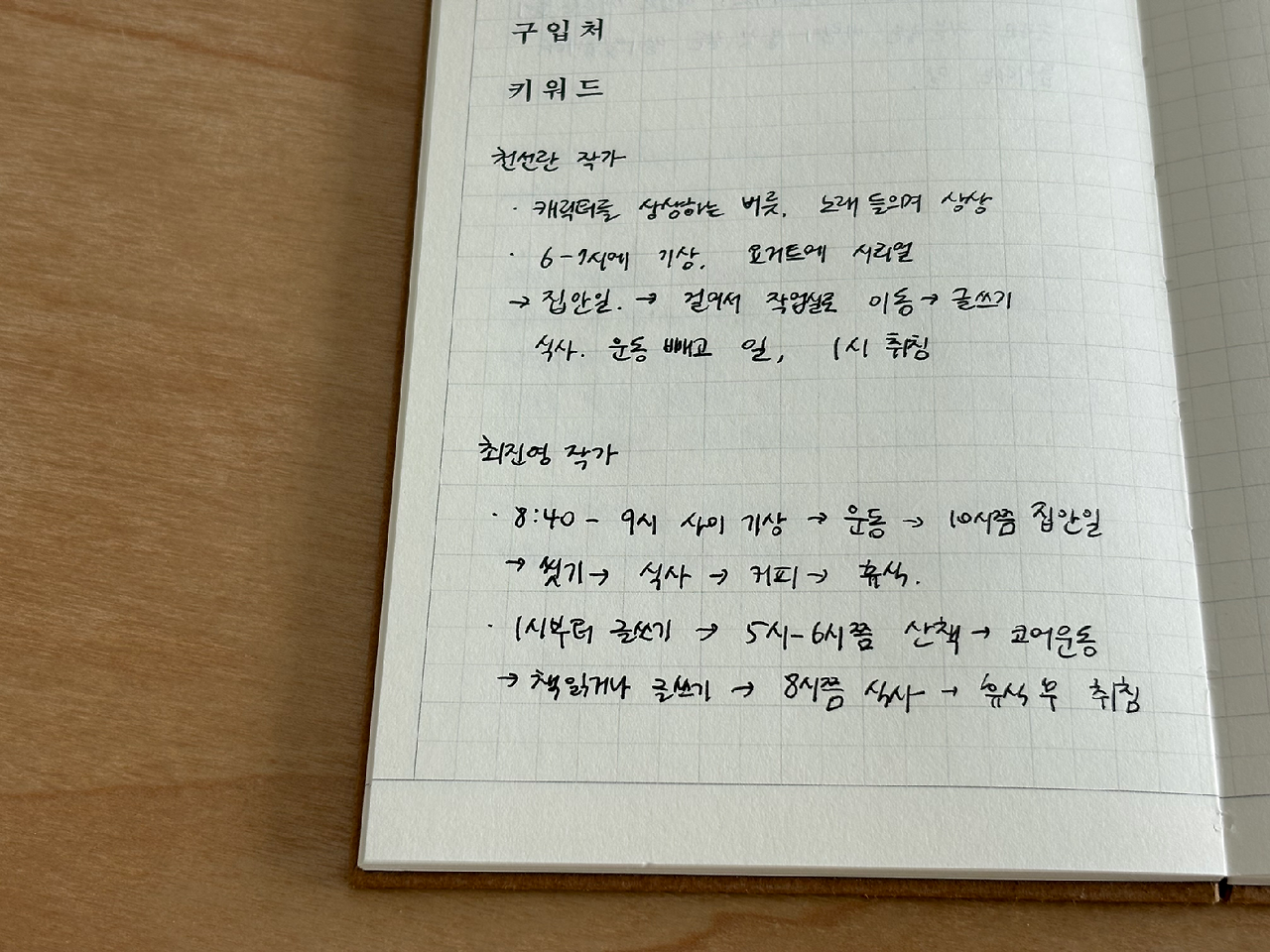 -글쓰기가 좋다기보단 글을 쓰는 시간이 필요했다는 말에 백번 공감한다. 부모님 몰래 3년 동안 장편소설을 써서 응모했고, 현재의 루틴 대부분이 그 3년 사이에 만들어졌다는 얘기도 진짜 위로가 됐다. 유명해지기 전에 만들어놨던 습관이 유명해진 후에도 유용하다는 것이..