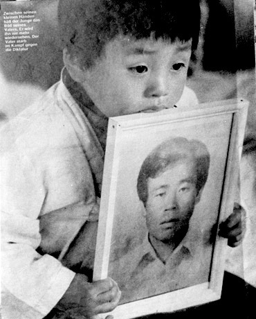 당신은 끝났지만, 난 끝나지 않았소. 당신은 권좌에 오르기 위해서 무고한 시민들을 군화발로 짓밟았고 총칼 아래 피 흘리며 쓰러지게 했소. 그런데도, 26년이 지난 지금까지 단 한마디 한마디 사과도 없었소.