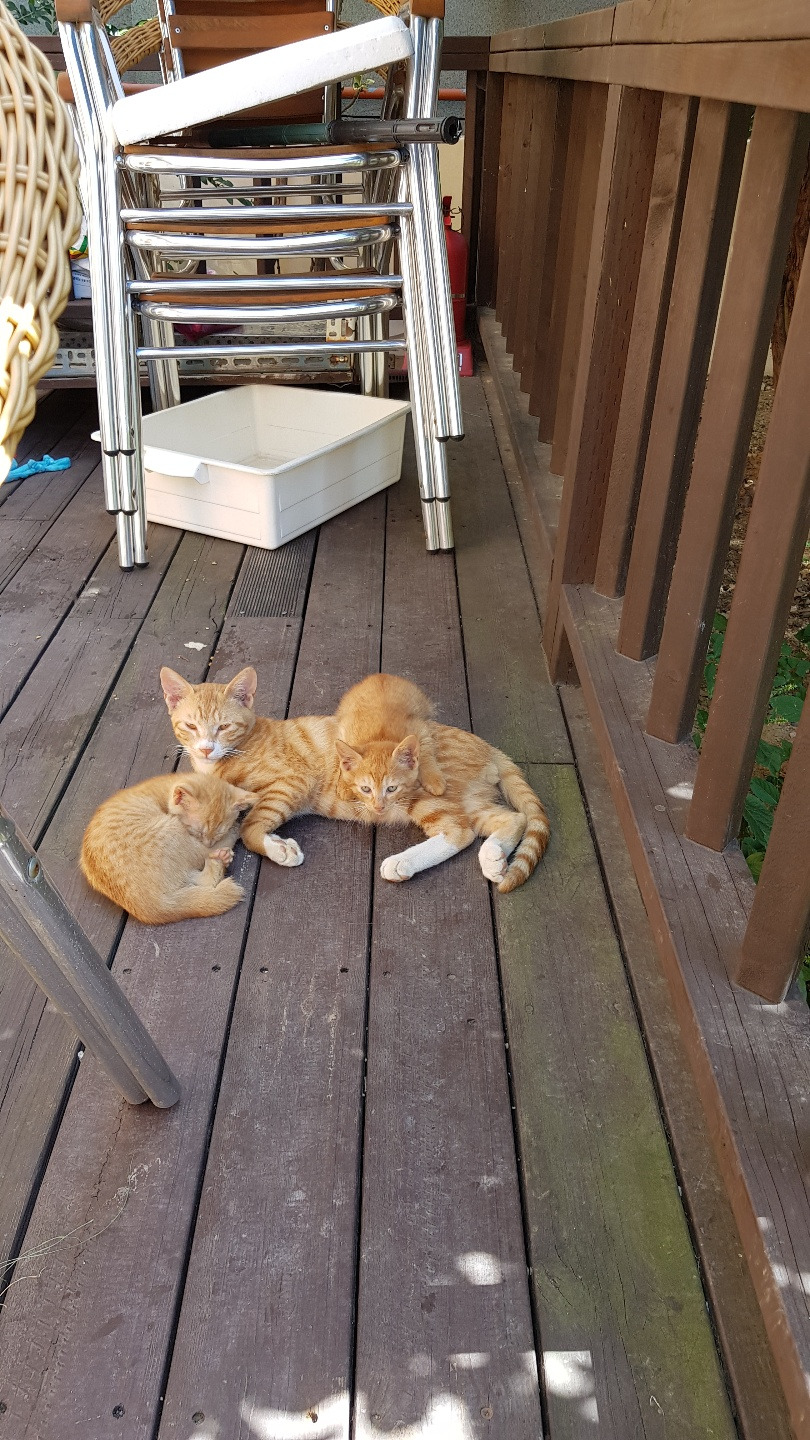 다음 날도 또 다음 날도 낯선 녀석은 떠나지 않고 노랭이 가족들과 함께 있었다. 지나가던 과객인 줄 알았는데 눌러앉아버렸다. 노랭이도 녀석을 차별하지 않고, 젖도 먹이고 그루밍도 해 주며 돌봐주니 나도 쫓아낼 이유가 없었다.
