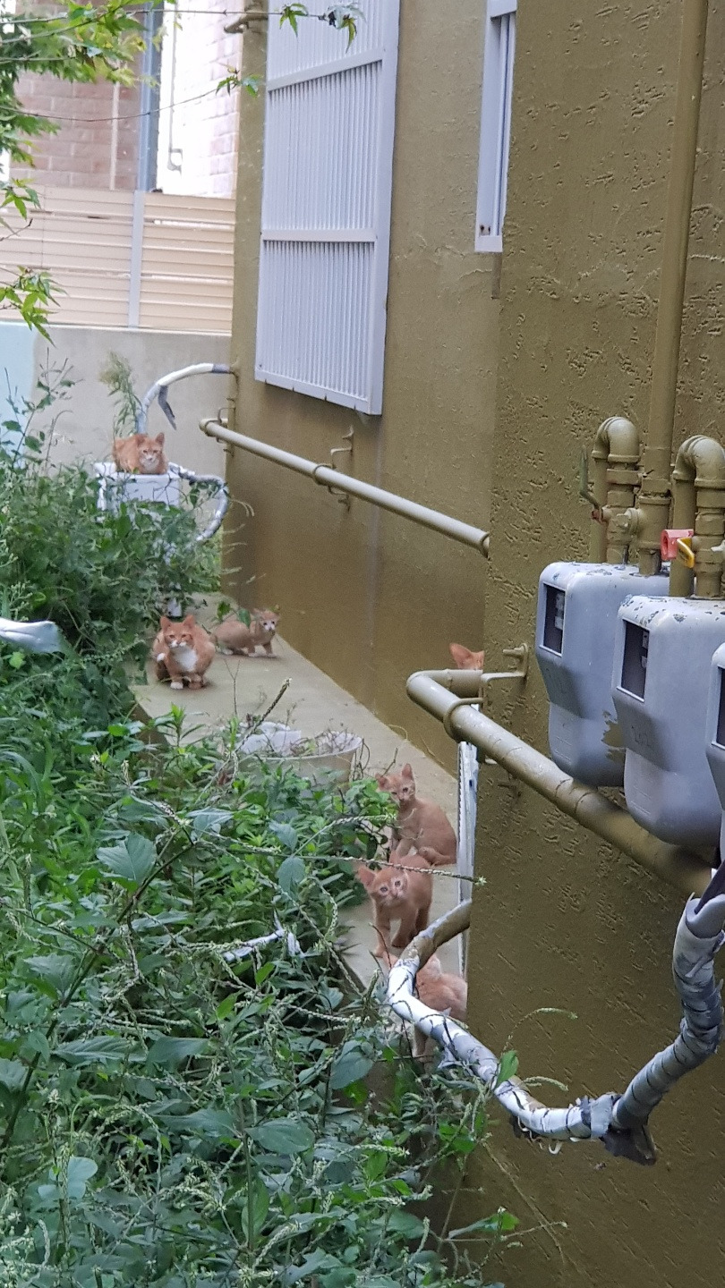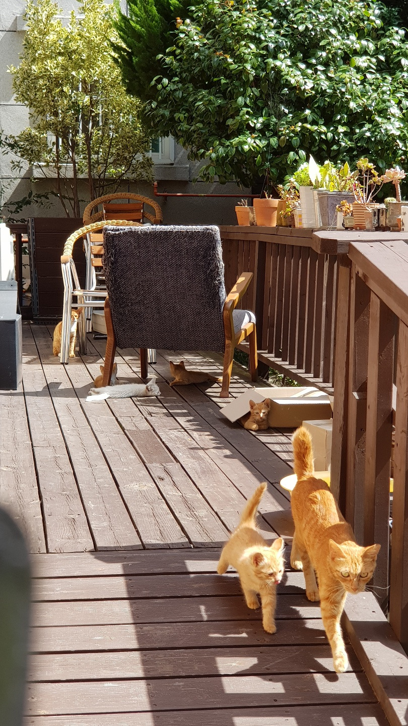 주변 이웃들은 다들 내가 나오면 모른 척 하지만, 몰래 내다보면 다들 마당을 들여다보며 흐뭇한 미소로 노랭이의 새끼들을 구경하곤 했다. 사실 모르는 사람이 집 안을 들여다보면 기분이 나쁠 수도 있지만, 나는 때가 때인지라 저렇게 귀여워하다 한 마리 데려가겠다는 사람이 나오지는 않을까 두근대는 마음으로 지켜보았다. 안타깝게도 단 한 차례의 입양 신청도 없었지만....