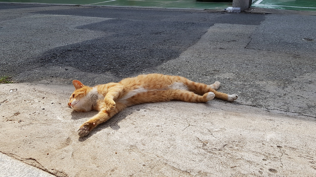 그렇게 건넛집 주택과는 약간의 라이벌(?)이자 협력자가 되어 잠시 집을 비울 때 왠지 안심하게 되었다. 사료가 떨어져도 며칠은 그 집에서 밥 얻어먹을 수 있겠지 생각하니 얼굴 한 번 본 적 없는 이웃인데도 정겹게 느껴진다. 이후에도 노랭이 가족은 그 집에 자주 놀러 가서 자고 오곤 했다. 지나가다 보면 한발이가 제 집처럼 마당에 쭉 뻗고 누워 있는 걸 집주인으로 보이는 분들이 사랑스러운 눈빛으로 지켜보고 계셨다. 고양이를 싫어하지 않는 것만도 감사한데, 이렇게 밥을 주고 잠자리를 내어주는 이웃이 있다는 건 정말 행운이었다.