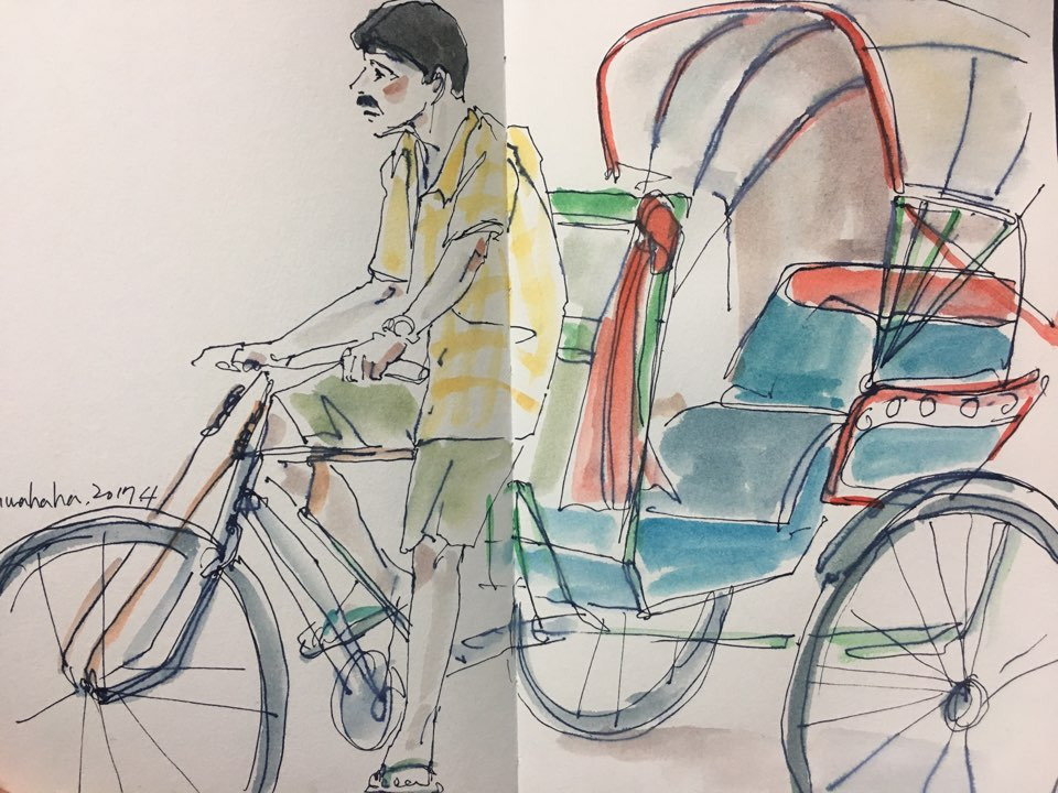 인도가 문뜩 떠올라 인터넷을 뒤지다 그린 릭샤.