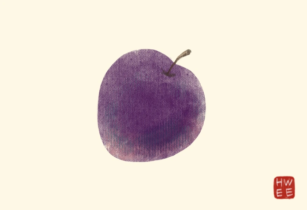 그날도 예쁘게 차려입고서는 마음에 들지 않지만 시골집 현관에 쌓여있는 큰 고무 슬리퍼를 신고 자두밭에 따라갔다. 온 가족이 시커멓게 잘 익은 자두를 땄다. 땅거미가 자꾸 발등 위를 올라탔고 나는 괴물처럼 양 발을 쿵쾅대느라 좋아하는 과일 따기는 뒷전이었다. 항상 주어진 일에 열심인 엄마가 느닷없이 내게 손짓했고 가까이 다가가자 진보라색 자두를 건넸다. 우리 모녀는 주렁주렁 열매가 풍성한 자두나무 사이에 쭈그리고 앉았다. 그곳엔 자두로 잔뜩 배를 채운다 해도 뭐라 할 사람이 아무도 없었지만 왠지 모르게 우린 조용히 자두를 먹기 시작했다. 어찌나 말캉말캉한지 자두 껍질을 앞니로 아주 작은 구멍을 내고 과육을 쏘오옥 빨았더니 씨를 품고 있는 촉촉한 덩어리가 입천장을 훑고 볼을 볼록하게 만들었다.