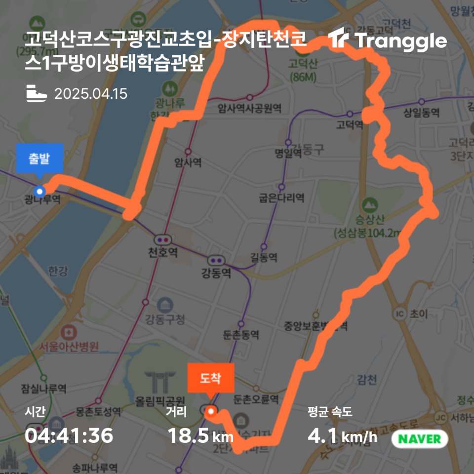 혼자 걸으니 스스로 놀잇감을 만들어내며 즐겁게 걸었다. 그러면서도 동시에 누군가가 갑자기 연락을 해서 중간에 합류하겠다는 연락이 왔으면 좋겠다는 상상도 했다. 이런 상상도 즐겁다. 아무튼 걷는 것은 혼자든, 함께든 무조건 좋다.