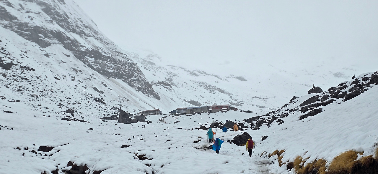 MBC에서 점심 식사를 한 후 ABC에 오르기 시작했다. 비가 제법 많이 오고 고산으로 올라가면서 기온은 떨어지고 있었다. 앞사람의 걸음이 느리지만, 서두를 수 없는 상황이어서 앞사람의 걸음 속도에 맞춰 걸었다. 나의 속도를 유지하지 못하니 추위가 몰려오고, 비에 젖은 등산화와 등산복으로 인해 점점 더 추워졌다. ABC 트레킹을 하면서 처음으로 힘들다고 생각한 순간이었다. 그때 “왜 산사람은 산에 오를까? 그들은 왜 이 힘든 과정을 겪으면서도 산을 오르고 또 오를까?”라는 의문이 들었다. 산에 오른다는 것은 일상의 편리함과 안락함을 포기한 행위다. 일상의 편안함을 스스로 걷어차고 일부러 고행을 하는 찾아 나선다. 왜 그럴까? 자신의 관성에서 벗어나고 싶기 때문이다. 내가 길을 꾸준히 걷는 이유가 바로 이 때문이기에 그런 생각을 하게 되었다.