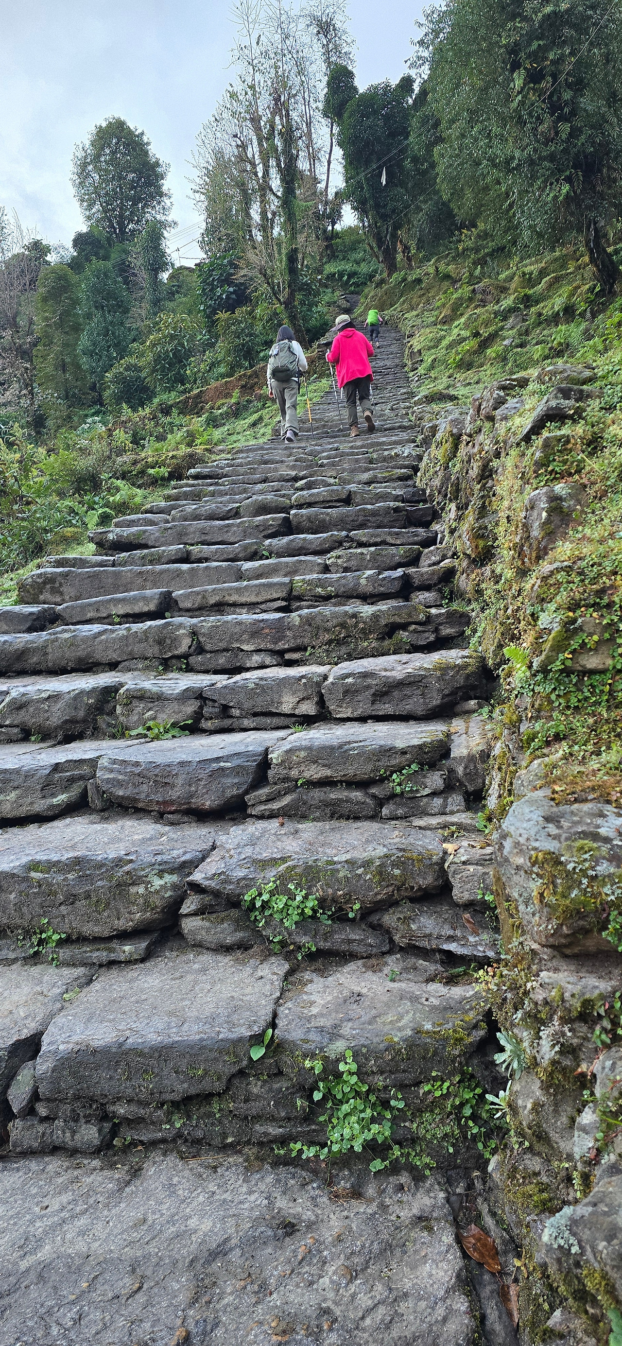 이번 ABC 트레킹에서도 똑같은 경험을 했다. 힘들면 잠시 쉬었다 걸으면 된다. 무리해서 빨리 오르려 하면 할수록 힘만 더 든다. 그리고 끝없이 이어지는 천국의 계단(?)의 경우에는 더욱 그렇다. 언제 저 계단이 끝날까라는 조바심을 내면 낼수록 힘만 더 든다. 빨리 올라 쉬려고 노력하면 할수록 힘만 더 든다. 그냥 세월아 네월아 하면서 걸으면 쉽게 오를 수 있다. 조급한 마음을 다스리고 그냥 한 걸음 한 걸음 옮기다 보면 언젠가는 그 힘든 계단길도 끝이 난다. 시간은 여유롭고, 후미 가이드가 지켜주고 있으니 길을 잃을 걱정을 하지 않아도 된다. 후미 가이드는 절대로 빨리 가라고 얘기하지도 않을뿐더러 우리의 보속이 아무리 느려도 절대 앞서 걷지 않는다. 그들만의 규칙이다. 길 잃을 걱정을 하지 않아도 되고, 천천히 자연을 감상하며 걸을 수 있고, 포기하지 않고 한 걸음씩 걸으면 저절로 목적지에 도착하게 된다.