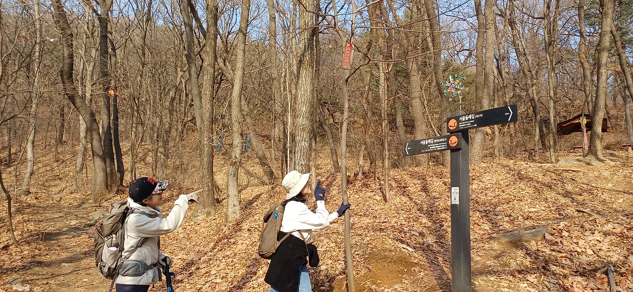 서울 둘레길 안내판 위에 바람개비가 달려있고, 바람을 맞은 바람개비는 힘차게 돌아갑니다. 갑자기 우리는 어린 시절로 돌아갑니다. 바람을 맞고 달리며 바람개비가 돌아가는 모습을 신기하게 바라보며 웃고 즐겁게 떠들었던 모습을 생각하며 마음속으로 미소를 짓습니다. 사소한 바람개비가 세상의 전부였던 시절도 있었습니다. 오늘 본 바람개비가 우리를 행복하게 만들어주었습니다. 렛고님의 배낭이 우리를 행복하게 만들어주었습니다. 배낭 구입 기념으로 맛있는 식사를 사주었으니 말입니다. 약간 매운 코다리찜과 막걸리 한잔을 마시며 우리는 행복했습니다. 걸어서 행복했고, 길벗의 행복한 모습을 보며 행복했고, 맛난 음식을 먹고 마시며 행복했습니다. 소박한 인생의 소박한 행복이 어느 누구도 부럽지 않은 행복입니다. 노래 가사가 떠오릅니다. “나는 행복합니다. 나~는 행복합니다 ~~”