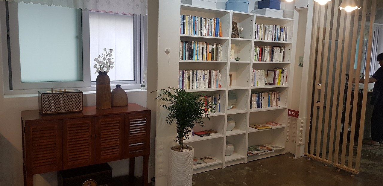 서가를 보니 심리학 책들이 있고, 걷기 관련 서적, 마음공부와 심신 힐링 서적 등이 많이 있습니다. 제 취향에 맞는 책들만 모아 놓은 것 같습니다. 책방 지기와 얘기를 나누다 보니 최근에 상담 심리 공부를 하셨고, 사람들의 영성 성장과 마음 치유에 관심이 많으시다고 합니다. 베르나르 올리비에 씨의 저서 ‘나는 걷는다’가 서가에 있어서 그 저자를 만났다는 얘기와 함께 제 자랑을 늘어놓기도 했습니다. 책을 기증받아 누구든지 편하게 읽을 수 다. 어르신들의 자서전 쓰기 강좌가 진행 중에 있고, 화가의 작품도 전시되어 있습니다. 앞으로는 작은 음악회도 기획하고 있고, 다양한 프로그램을 진행하는 아름다운 공간으로 만들어 나가시겠다고 합니다.