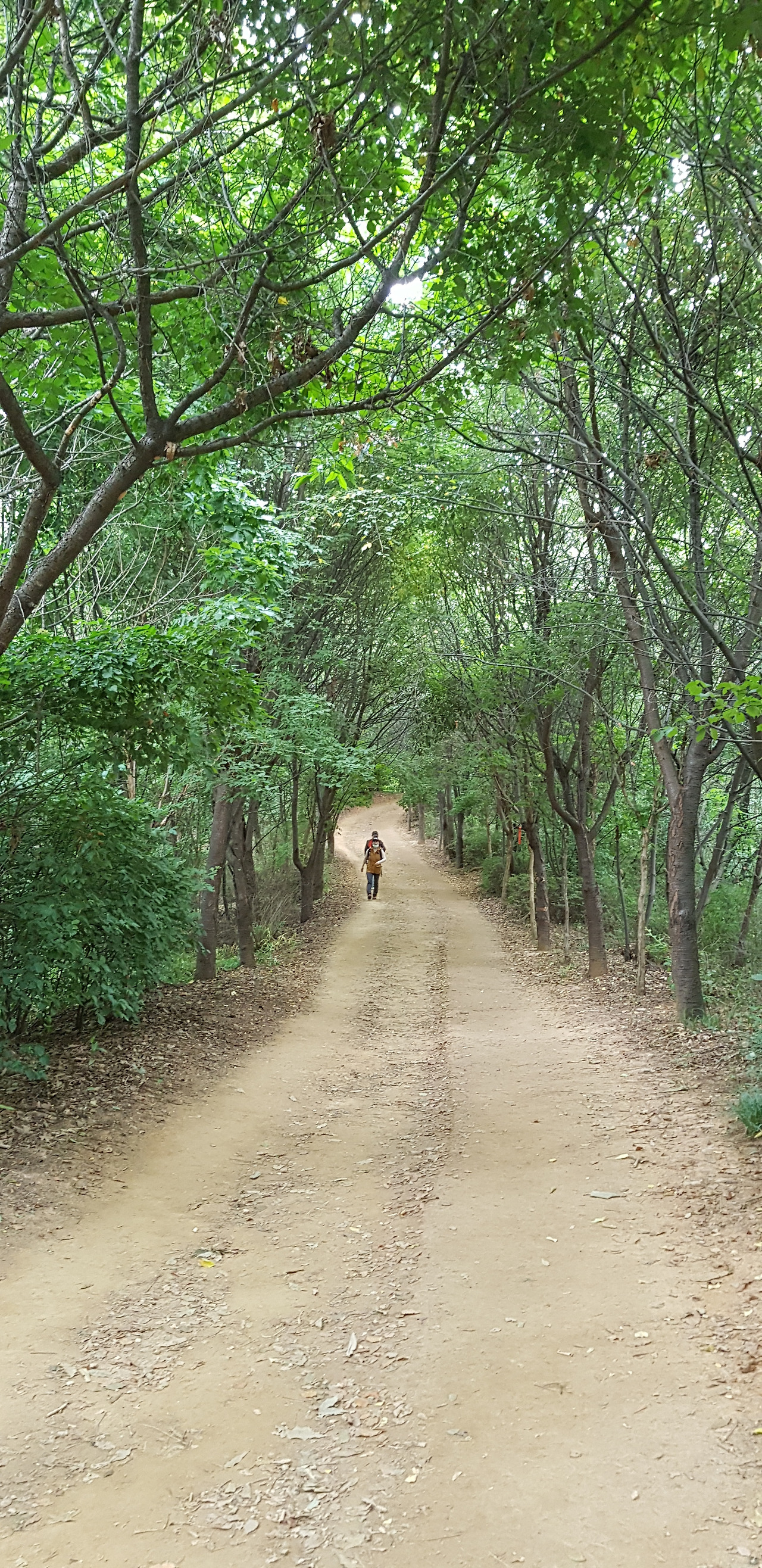길은 공사로 인해 자주 변경된다. 불과 한 주 전에 답사를 다녀왔음에도 중간 길이 끊겼고 간단한 안내문만 쓰여있다. 우회하는데 서울 둘레길 관계자인 듯한 분들이 열심히 안내 리본을 달고 있다. 변경된 길을 안내하기 위해 더위에 노력하시는 분들 덕분에 우리는 편하게 걸을 수 있다. 서울 둘레길은 표식이 잘 되어 있어서 길을 놓칠 염려가 없다. 주황색 리본, 도로 위 페인트로 된 화살표와 안내문, 산길에 있는 나무 표식, 중간중간 코스 안내도 등. 어플도 잘 정리되어 있고, 스탬프함 관리도 잘 되어 있다. 지속적인 관리를 잘하는 모습을 보며 관계자분들에게 감사를 드린다. 하지만, 지자체 별로 자체적인 길을 만들어 서울 둘레길 표식은 보이지 않고, 자기 지역 내 조성된 길 표식만 있어서 중간중간 혼란스러울 때가 있다. 서울 둘레길이 잘 조성되어 있는데, 각 구(區) 별로 또 다른 길을 만들 필요가 있는지 이해가 되지 않는다. 지자체장들의 위업을 드러내기 위함인가? 전체 서울 시민을 생각한다면 굳이 각 구별로 길을 만들어 서울 둘레길 걷는 사람들에게 불편을 초래하게 만드는 것이 위업인지 잘 모르겠다.