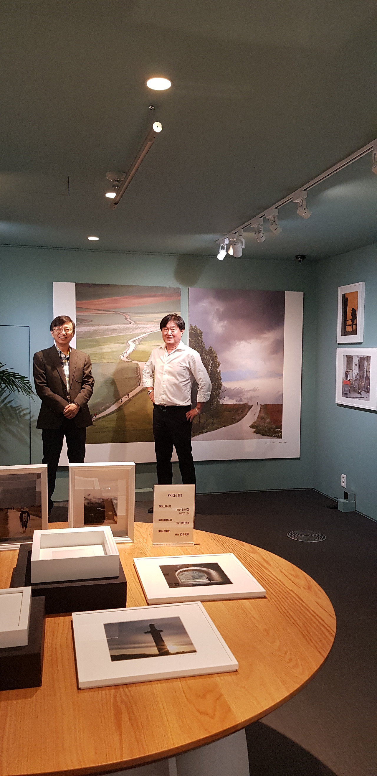 무거운 카메라 거치대를 허리에 차고 10kg이 넘는 배낭을 메고 산티아고 길을 걸으며 무려 일만 장의 사진을 찍은 사진작가 최연돈님의 전시회를 다녀왔습니다. 같이 산티아고 길을 걸은 길동무의 사진전을 보러 가는 마음이 들떠있었습니다. 일만 장의 사진을 정리하고 전시회 출품할 사진을 선정하는 과정도 만만치 않았을 겁니다. 또한 정리 작업을 하며 산티아고를 다시 다녀온 느낌을 받기도 했을 겁니다. 작가는 반갑게 맞이해주었고, 테이블에서 사진 액자 작업을 기쁜 마음으로 하시는 부인의 모습도 보기 좋았습니다. 가정과 일, 그리고 취미 생활을 균형감 있게 유지하는 모습이 보기 좋았습니다.