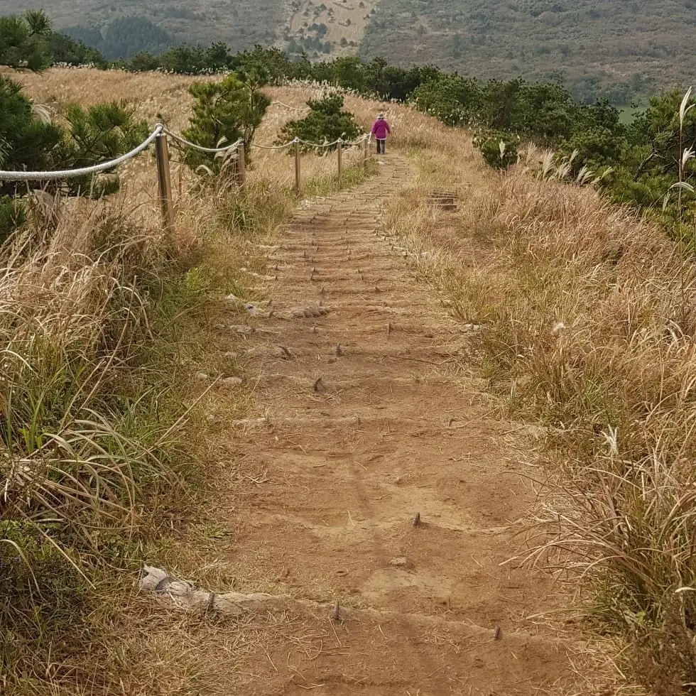 내가 무료해 보였던지 사위는 집 근처에 있는 다랑쉬 오름을 알려주며 아침에 골프 연습장에 가는 길에 입구까지 태워주겠다고 한다. 고맙지만 사양하고 걸어서 갔다. 집에서 입구까지 약 2.5km 정도의 거리이기에 여유롭고 한가하게 걸어가고 싶었다. 입구에 도착하니 주차된 차들이 많이 보였고, 오름에 오르며 사람들을 제법 볼 수 있었다. 나름 알려진 명소라는 사실을 다녀온 후에 알게 되었다. 오름에 오르니 정면에 바다와 성산 일출봉이 보이고, 후면에는 넓은 평원이 보인다. 분화구 주변에 길을 조성해 놓아서 안쪽에는 분지가 바깥 쪽에는 바다와 평원이 보이는 둘레길은 아주 아름다운 트레킹 코스이다. 길 조성도 아주 잘 되어 있다. 계단 정비도 잘 되어 있고, 길을 표시하는 밧줄과 포스트로 길을 안내해 주고 있고, 산길 중간에는 자연 친화적인 멍석이 깔려 있다. 하산해서 집에 오는데 삼삼오오 오름에 가기 위해 걷는 사람들이 보였고, 길을 묻는 사람들도 있었다. 마치 주민인양 친절하게 안내해주며 몸도 마음도 가볍게 집에 돌아왔다. 오름도 제주 올레길 못지않는 멋진 트레킹 코스이다.