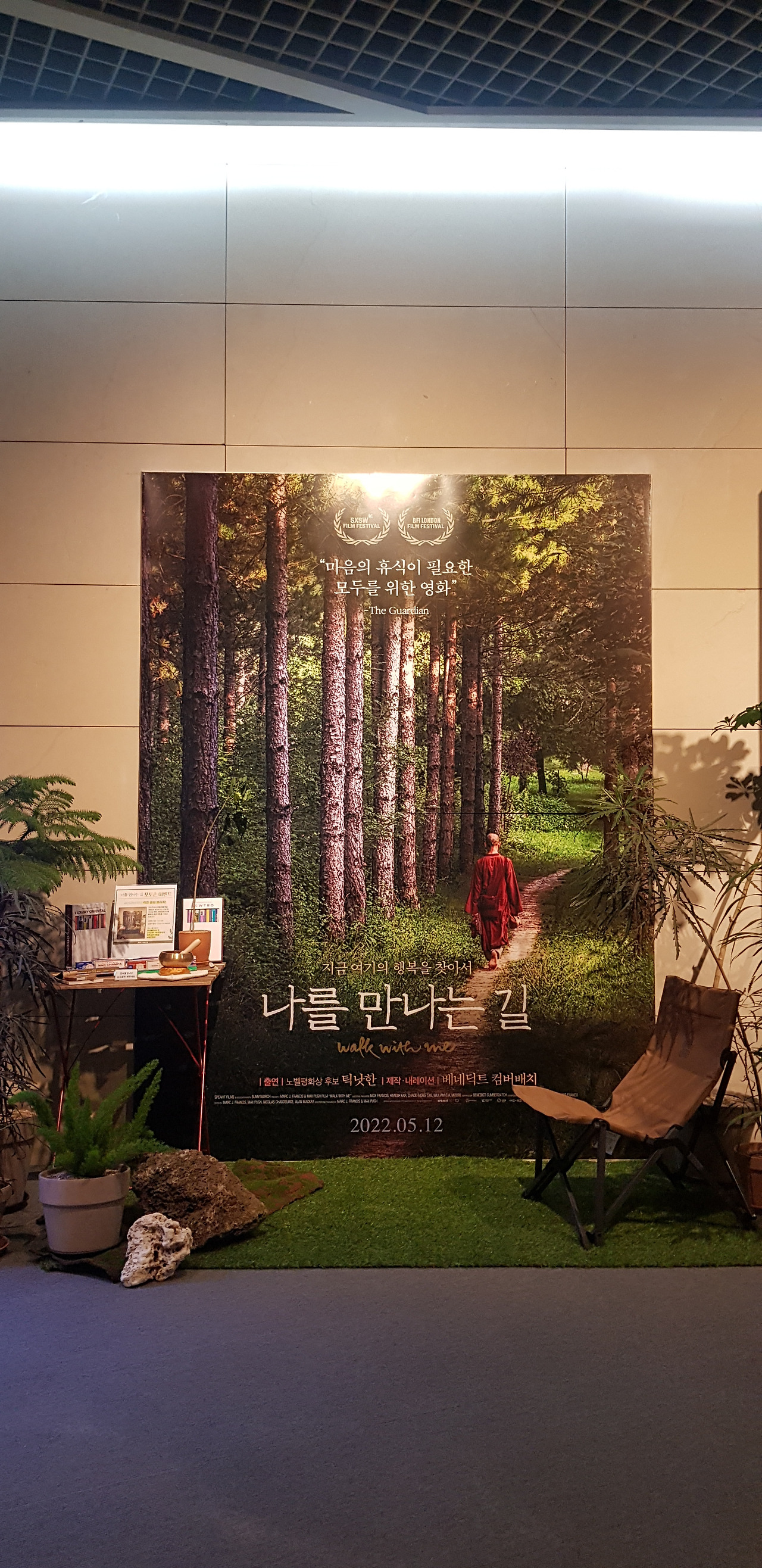 영화 입장 시 포스터를 나눠준다. 한 사람은 그 포스터를 안방에 붙여놓았고, 그 포스터를 볼 때마다 종소리와 침묵 걷기를 떠올리고 싶다고 한다. 멋진 생각이다. 일상 속에서 숲을 거니는 여유로움을 유지하길 바란다. 플럼 빌리지에서는 15분마다 종이 울리고, 그 종소리를 듣는 순간 하던 모든 일을 멈추고 지금-여기에 머무는 시간을 갖는다. 스님께서는 하신 말씀이 기억에 남는다. “우리는 이미 도착했고, 집에 있다. 하지만, 늘 무언가를 찾고 얻기 위해 바쁘게 뛰어다닌다. 마음 챙김의 순간이 바로 지금-여기로 돌아오는 중요한 순간이다.” 종소리를 울리는 이유이다.