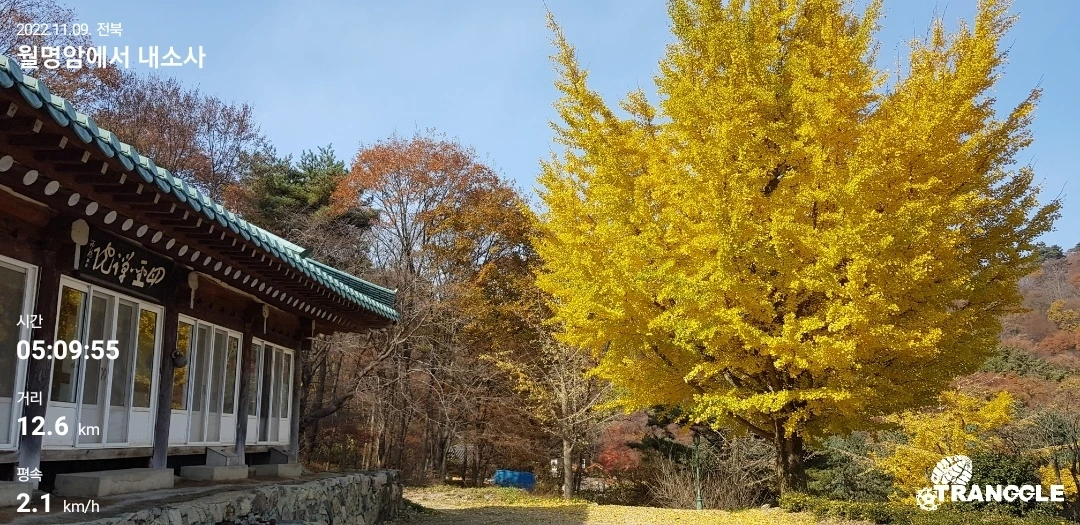 동안거 결제 중이다. 월명암을 찾아온 이유도 부설 스님이 결혼한 후에도 수행해서 깨달음을 얻었다는 부설 거사를 기리며 마음속으로 수행을 잘하겠다는 다짐을 하기 위해서이다. 부설 거사는 재가 불자들도 깨달음을 얻을 수 있다는 희망의 아이콘이다. 사성 선원 앞에 큰 은행나무가 햇빛에 비쳐 강하게 존재를 드러내고 있다. 비록 부설거사는 지금 존재하지 않지만, 그 은행나무가 부설거사의 현신처럼 느껴진다. 크게 우뚝 솟은 은행나무는 쳐다보기가 어려울 정도로 빛을 발하고 있다. 부설 거사는 몸을 바꾸었지만, 은행나무가 빛을 발하며 법문을 설하고 있다. 언제 어디에서든 공부를 꾸준히 이어가면 깨달음을 얻을 날이 올 것이니 게으름 피우지 말고 정진하라고.
