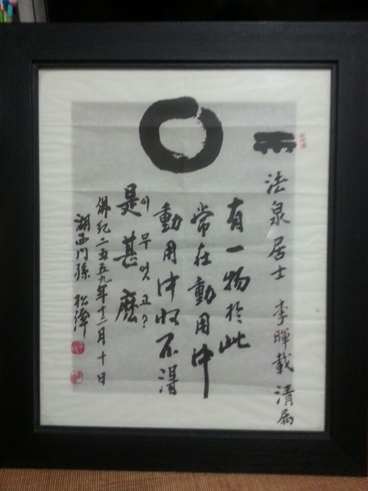 송담스님에게 화두첩을 받은 날이 불기 2559년 12월 10일이다. 불기 2559년은 7년 전인 2015년이다. 오랫동안 알고 지낸 한 선배 덕분에 송담 스님을 친견할 수 있게 되었고, 화두도 받을 수 있었다. 송담 스님께서는 노구임에도 화두첩에 나의 법명과 이름을 직접 써 주시며 화두 참선을 꾸준히 하라는 당부의 말씀도 하셨다. 그 당시에는 아무 생각도 나지 않을 정도로 가슴이 벅찼다. 연로하신 송담 큰스님을 친견한다는 것은 쉬운 일이 아니었다. 하지만 30년 이상 마음속으로 친견하기를 기도하고 있었다. 큰스님께서 머물고 계신 사찰에 앉아서 큰스님의 그늘이라도 느끼고 싶어서 종종 찾기도 했다. 우연한 기회에 그 사찰의 주지스님과 인연이 깊은 선배가 나의 마음을 알게 되어 주지스님에게 부탁을 드렸고, 얼마 지나지 않아 큰 스님을 친견할 기회가 주어진 것이다. 스님께서 여러 말씀을 해 주셨는데 아무 것도 기억나지 않는다. 하지만 요즘 스님 법문을 들으며 그 당시 하셨던 말씀이 그대로 법문에 들어있어서 기억을 되살릴 수 있었다. 똑같은 말씀을 반복하시느라 힘드셨을 것이라는 생각에 송구한 마음만 가득하다.