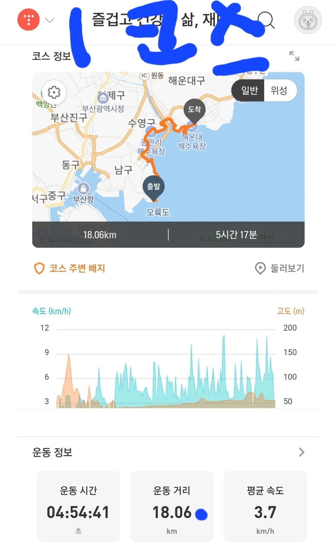 길 안내자이기에 길에 대해 이런저런 생각을 한다. 물론 출발지점과 도착지점이 정해져 있고, 두루누비라는 어플이 길을 안내해 주기에 길을 걷는데 큰 어려움은 없을 것이다. 숙소도 각자 예약하고, 식당은 길을 걷다가 적당한 곳이 있으면 들어가서 먹으면 된다. 그리고 걸으면 된다. 그럼에도 안내자라는 역할 때문인지, 이 역할에서 벗어나지 못하고 자꾸 길에 대한 정보를 검색하며 들여다보게 된다. 포털사이트에 들어가 해파랑길에 대한 검색을 하면 이 길에 대한 많은 정보들이 나온다. 블로그나 다른 sns에 써 놓은 정보들이다. 하지만 정작 내게 필요한 정보는 찾기가 쉽지 않다. 대부분 풍경 사진, 식당 사진과 음식, 또 자신의 신변잡기를 기록한 내용들이 많다. 내가 필요한 정보는 한 코스를 걷는데 어느 정도의 시간이 소요되었고, 평균 보속은 어느 정도였고, 고도는 몇 미터인지 등이다. 물론 일부 블로그에 기록해 놓은 정보가 있기는 하지만 특히 고도 정보는 별로 없다. 고민 끝에 트랭글이라는 어플에 들어가 검색해 보니, 필요한 정보를 찾을 수 있었다. 길을 걷기 위해, 그것도 다른 사람들과 함께 걷기 위해 거리, 고도와 소요시간, 이 정보만 있으면 충분하다. 이번에 걸을 해파랑길 1 - 4코스는 별로 어려운 길은 아닌 것 같다.