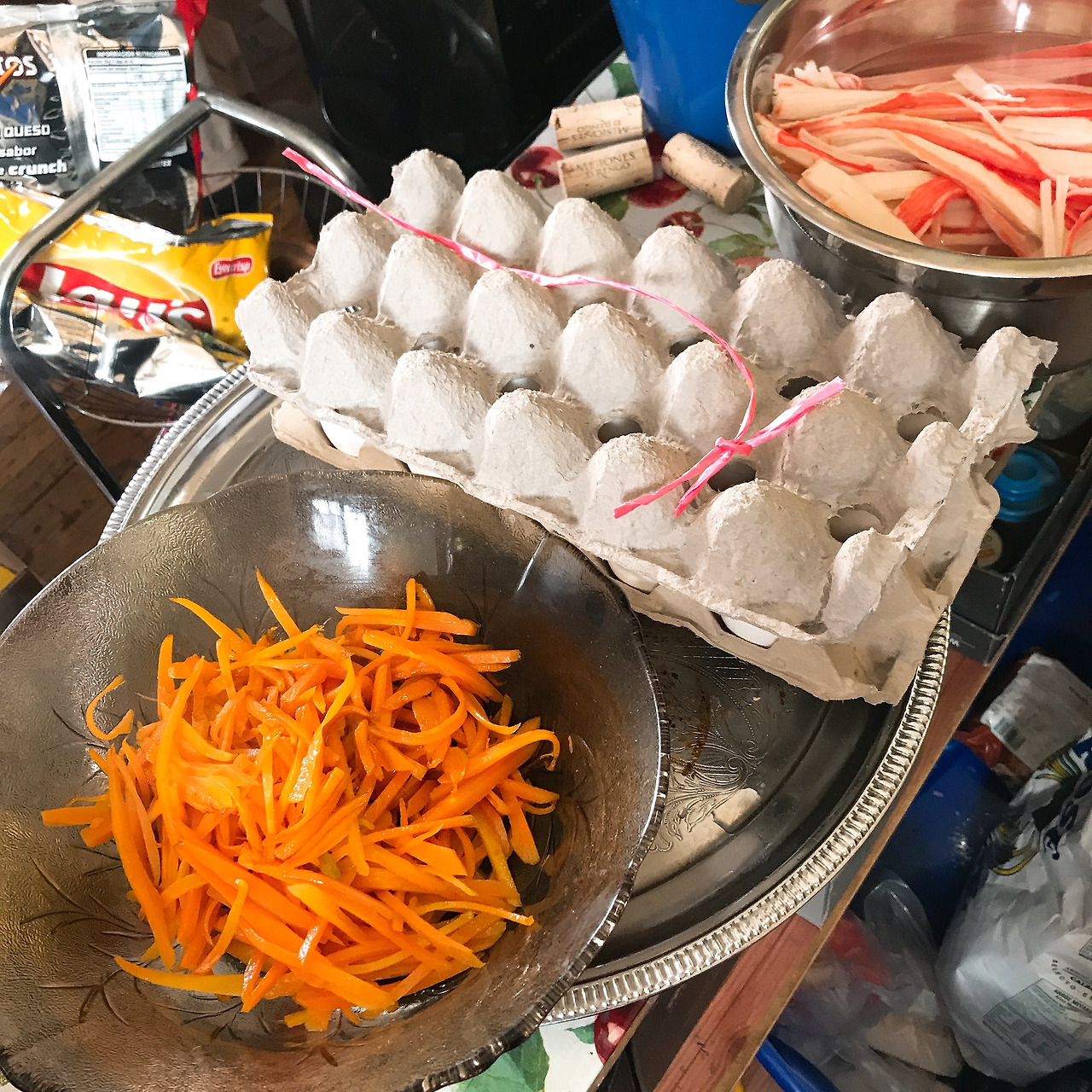 그런데 여기서도 만드는 과정에 문제가 생겼다. 첫 번째로 우리는 김밥을 싸 본 적이 없었다. 그래서 통 단무지를 사서 일일이 잘랐는데 이게 여간 손이 가는 게 아니었다. 또 재료 손질하는 속도도 느렸다. 두 번째로 우리나라를 제외하고 찰기가 있는 쌀을 쓰는 나라가 몇 안 된다는 사실을 간과했다. 칠레는 날리는 기다란 쌀을 먹는 나라였기 때문에, 칠레 쌀로 김밥을 말았더니 말자마자 ‘푸다닥’ 소리와 함께 해체되었다.