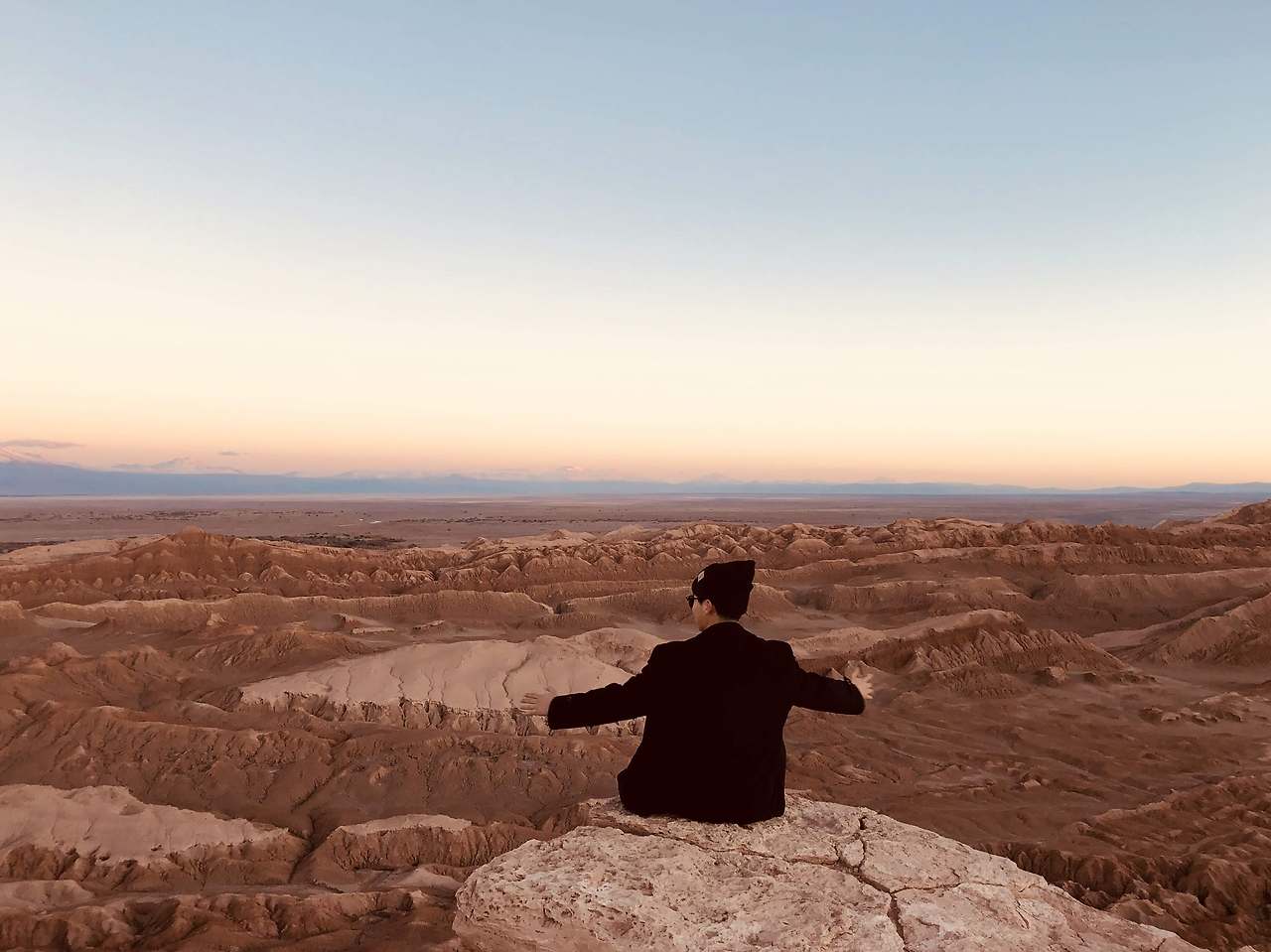 놀라운 광경을 바라보며 석양이 질 때까지 기다렸다. 시시각각으로 변화하는 하늘의 색이 땅의 색과 비슷할 무렵이 되자, 정말 달 어디 한가운데에서 태양을 바라보는 듯한 기분이 들었다.