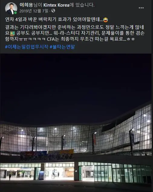 시험 종료 후 문 닫고 합격할 줄 착각? 하고 감성 페북 흑역사 / 2019.12.