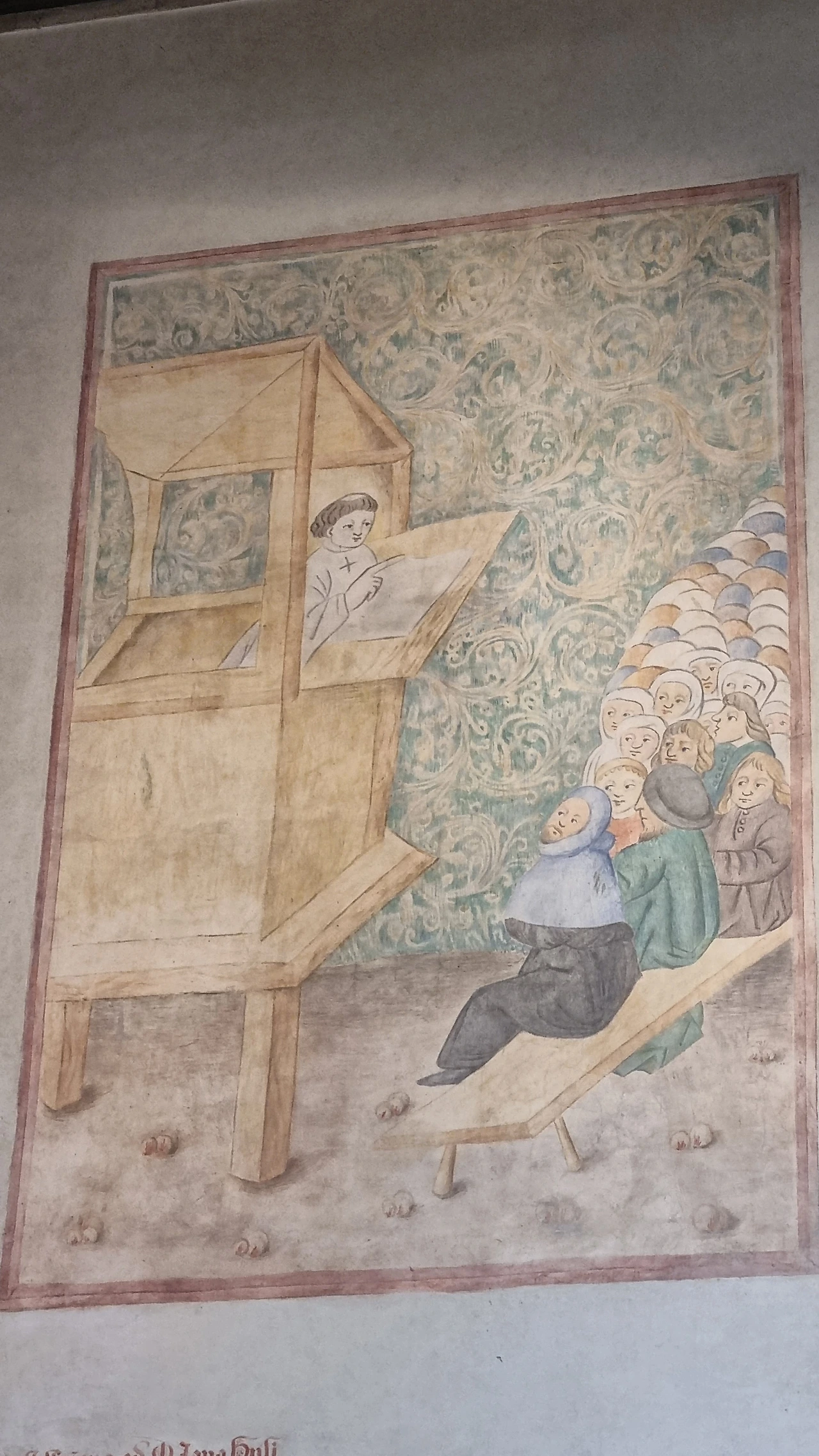 시내 중심가 한복판에 위치해 있지만 예배당 안은 바깥 세상과 완전히 분리되어 기분 좋은 적막이 감돈다. 두루 돌면서 벽에 그려진 그림을 감상한 후에 조용히 의자에 앉았다.