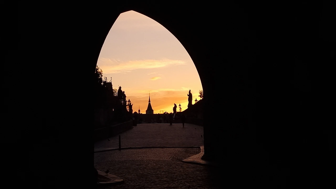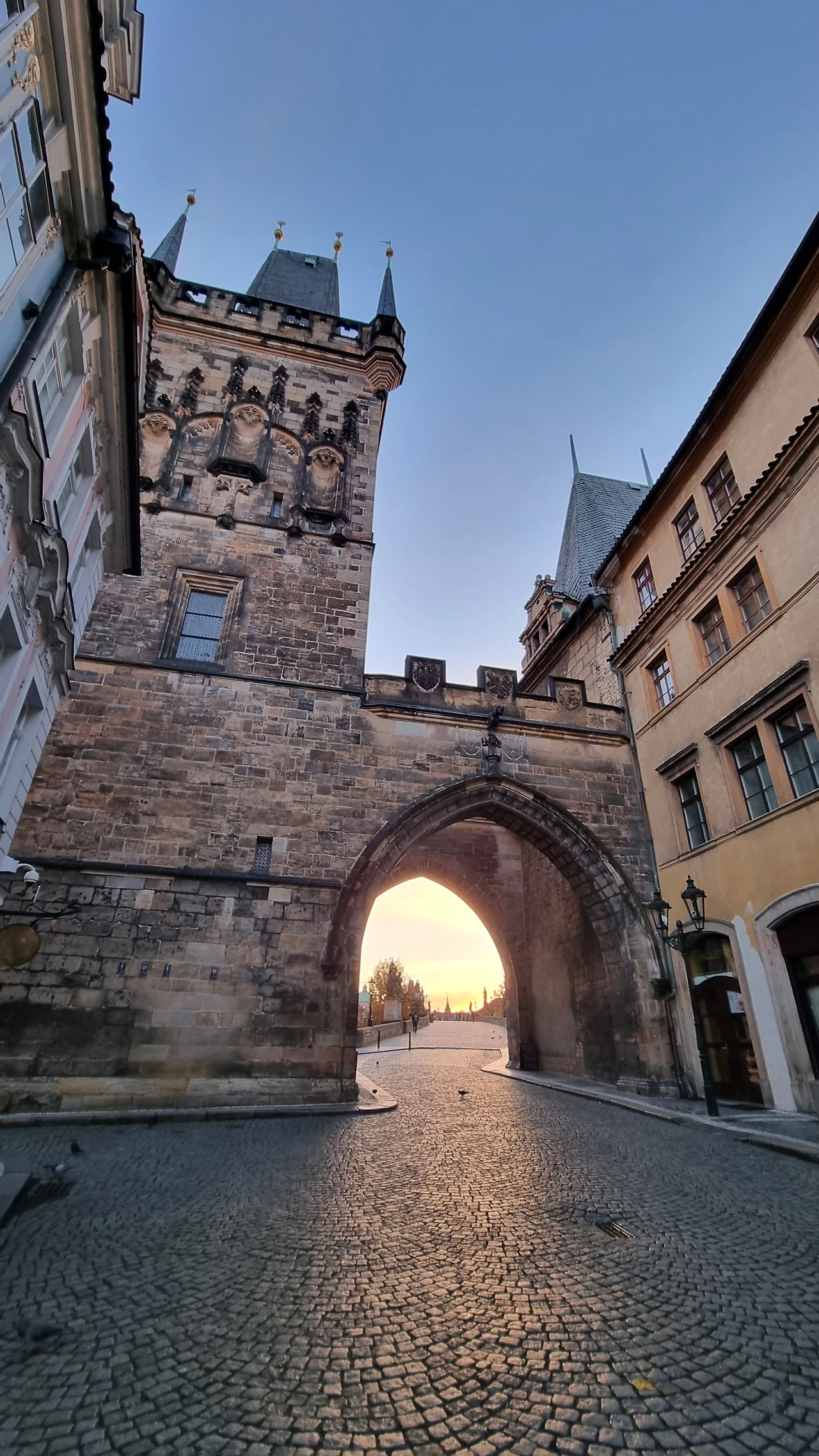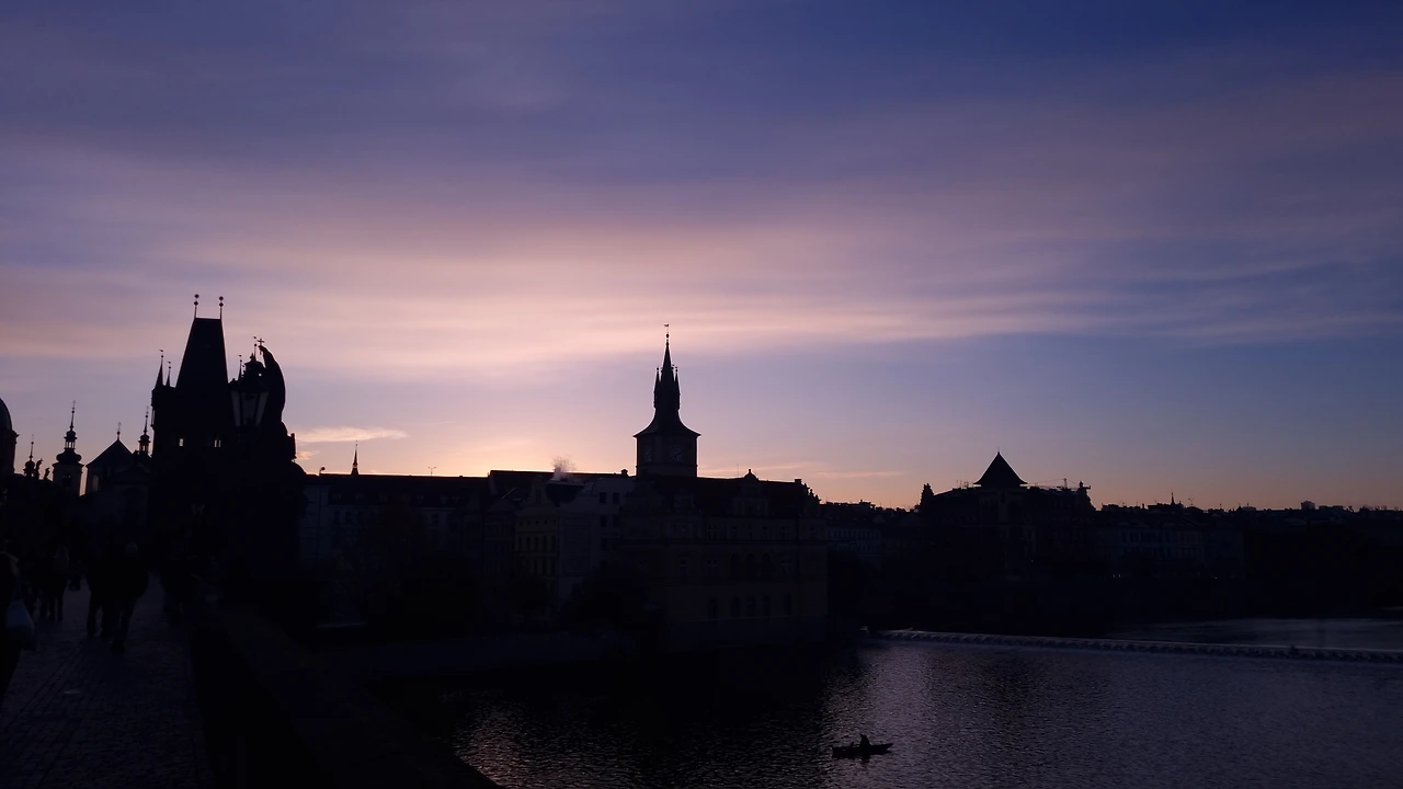 카를교는 낮에 사람들이 너무 많다고 해서 한산할 새벽에 왔는데 저 멀리 여명이 짙어지고 해가 차오르는 게 느껴진다. 색깔이 너무 오묘하고 아름다워서 벅차오르고 빨리 가서 봐야겠다는 생각. 해를 잡으러 신나게 뛰어갔다!
