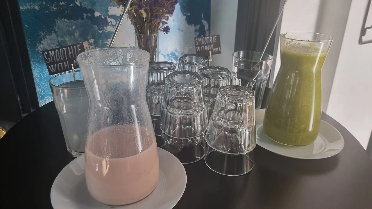 왼쪽은 우유 들어간 스무디, 오른쪽은 안 들어간
