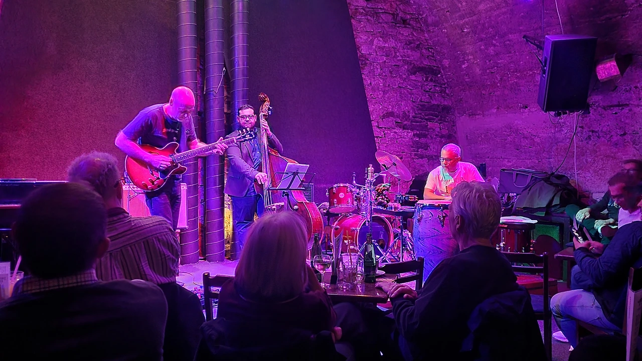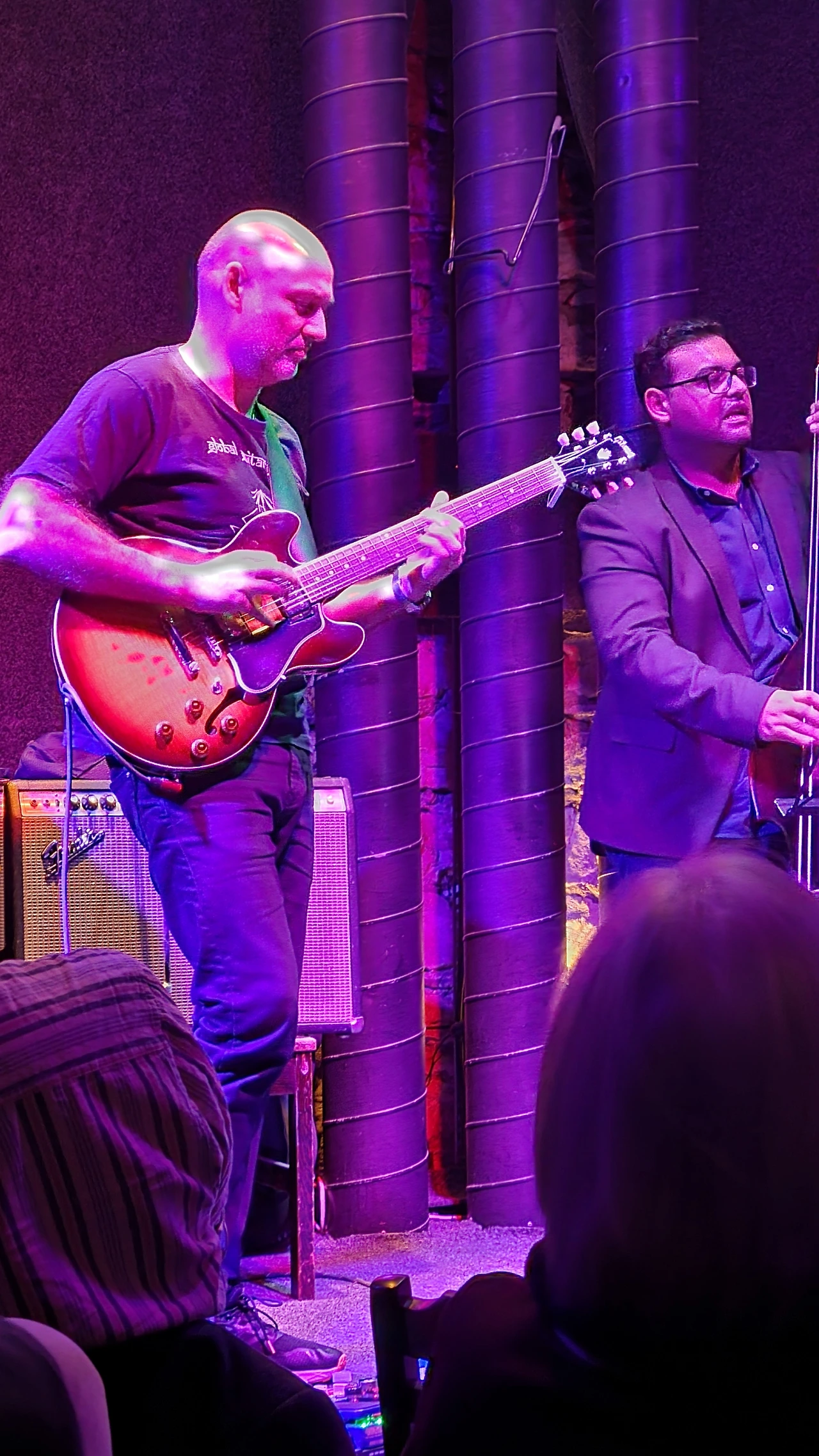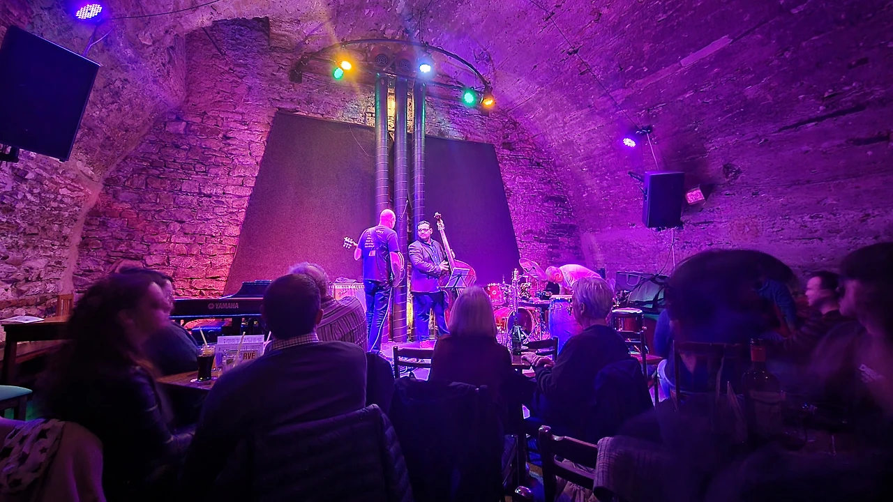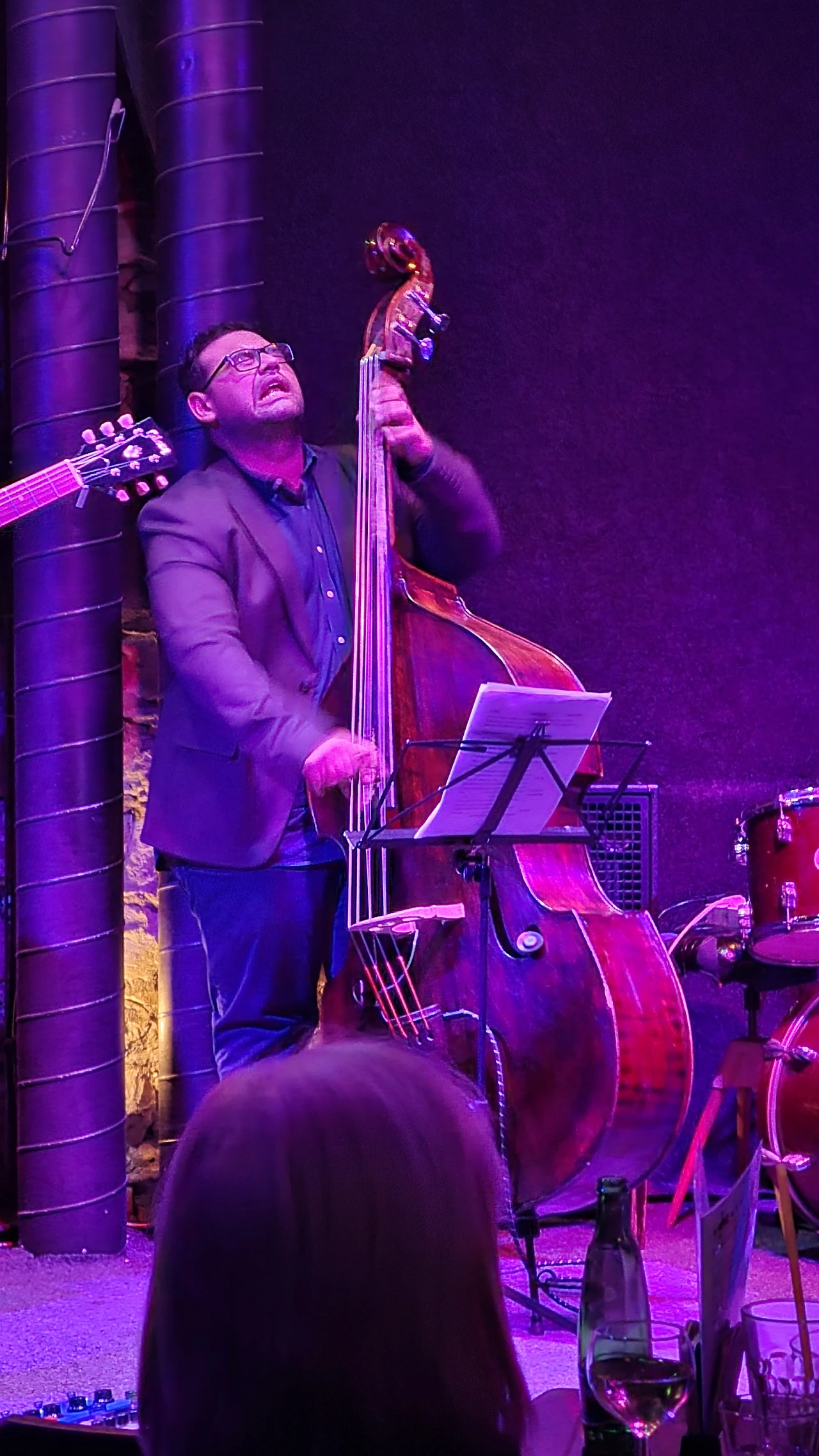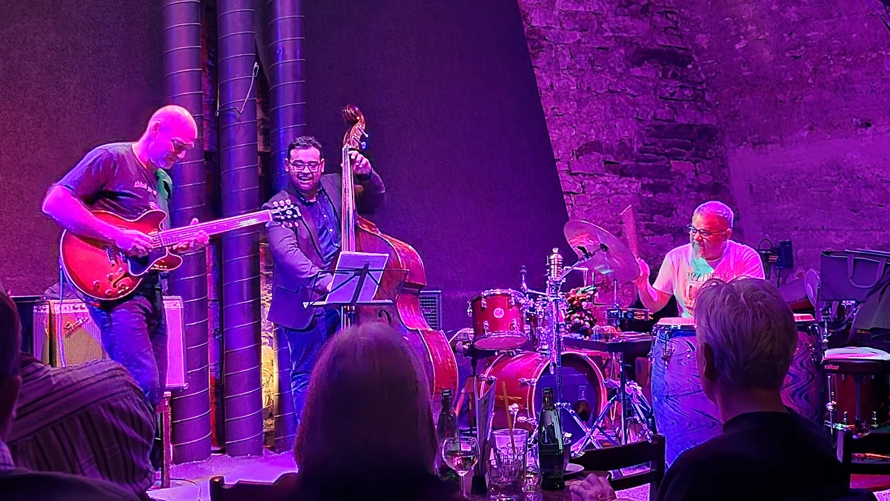 한국 분들과 인사나누고 내 자리에 앉으니 재밌게도 같은 줄 전체가 한국인들이다. 정보통 한국인들이 찾아왔다는건 여기가 음악 맛집이란 거군. 아담트리오 라는 오늘의 연주자들은 일렉기타, 콘트라베이스, 퍼커션 드럼 으로 이루어져있는데 신나게 연주하는 모습이 참 보기좋았다. 그 재즈 특유의 자기 흥에 흠뻑 취한 느낌이 연주자들의 표정으로 잘 드러나서 그 표정 구경하는 것도 재미가 있다.