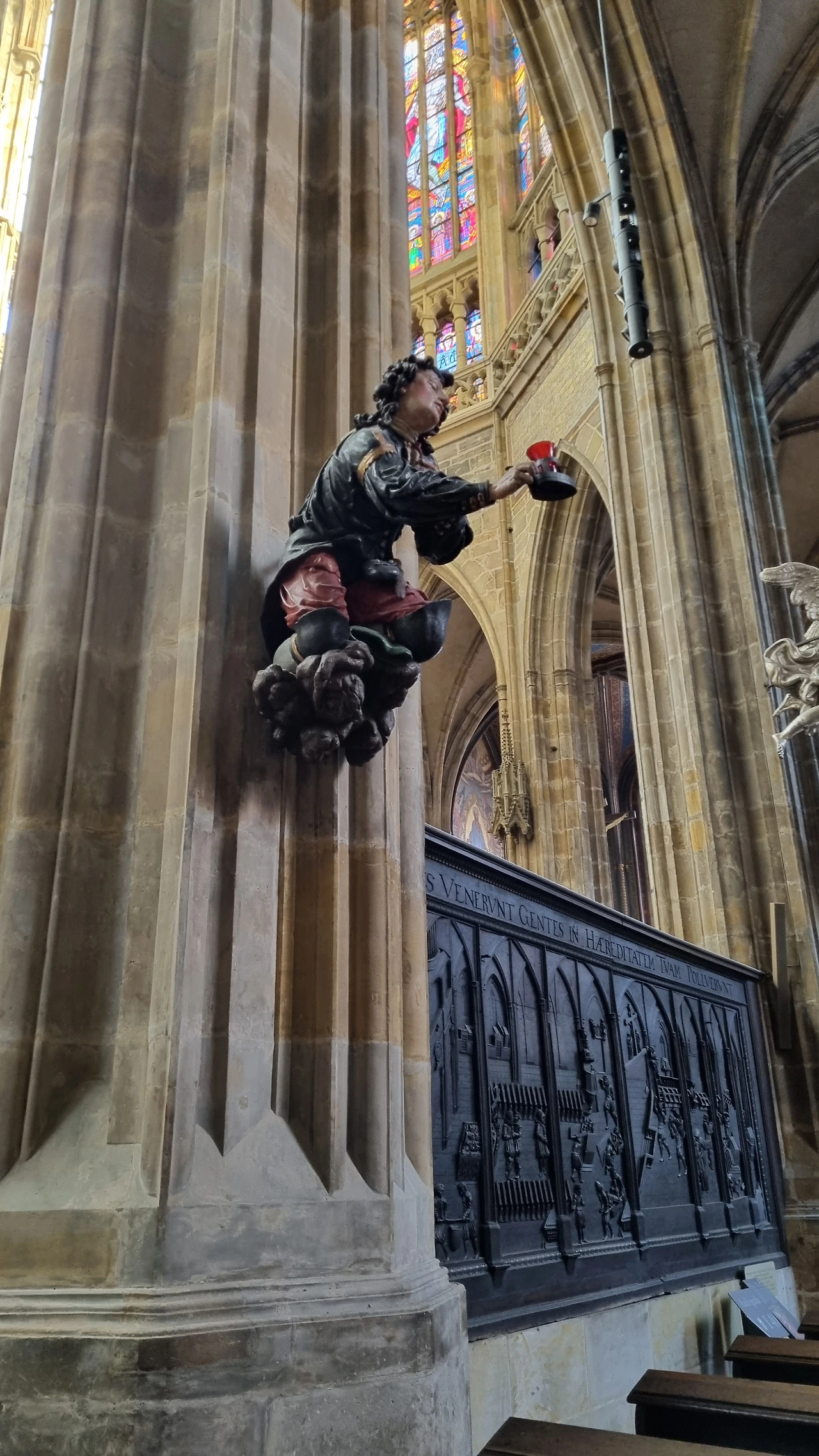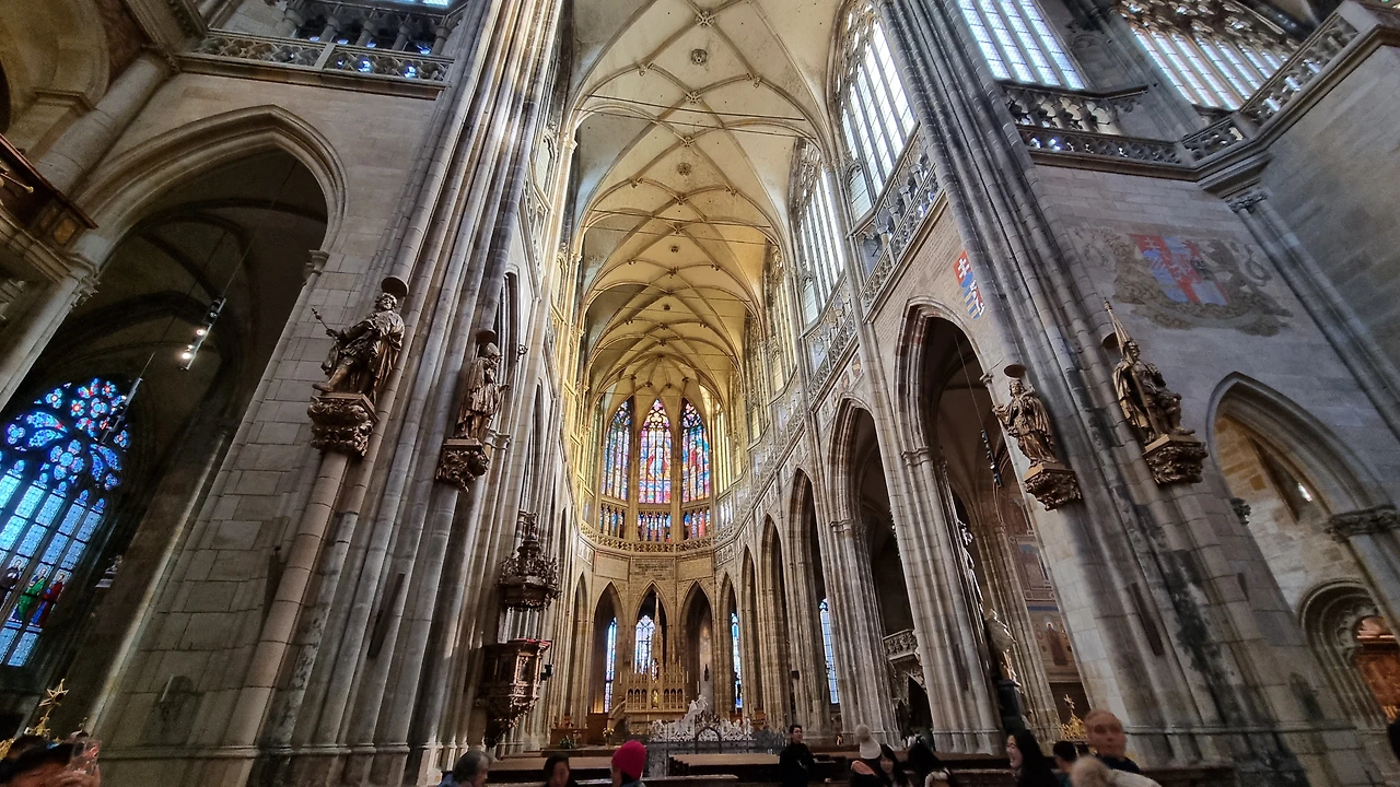 오픈하자마자 왔는데도 비투스 성당은 단체 관광객들로 가득했다. 이것저것 설명할 포인트가 많은 성당이라 중국어, 영어를 비롯한 각국의 가이드들과 그를 따르는 관광객 무리들의 행렬. 떠밀려서 가다가 익숙한 한국어가 들린다! 헤헷. 나는 적당히 한국어 해설을 조금 ’빌려‘들었다. 성당에는 은으로 만든 묘도 있었다. 잠들어 있는 분은 자신의 묘를 이렇게 많은 사람들이 구경할 것을 알았을까? 압권은 여러 화가들이 만든 스테인드 글라스 창이다. 그 중에서도 알폰스 무하라는 화가가 만든 스테인드 글라스는 자연스럽고 색감이 남다르다.