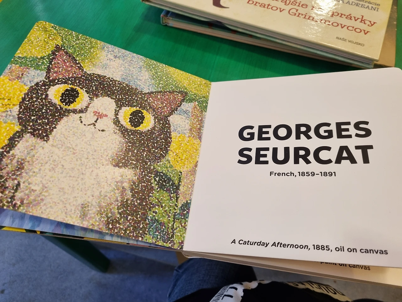 안으로 입장하자 우리 도서관과 비슷한 느낌의 책장들과 이용하는 시민들이 가득하다. 체코 사람들이 유럽에서 가장 책을 많이 읽는 다던데, 책이 가득하지만 내가 읽을 수 없는 체코어로 되어 있어서 어린이책 코너로 가봤다. 그렇지! 익숙한 삽화의 어린왕자가 있다. 그림책은 만국공통어라서 얼마나 다행이고 재밌는지. 흥미로운 책을 발견했는데 고양이 그림으로 유명한 화가들의 화풍을 표현한 책이었다. 화가의 이름을 패러디한 고양이 이름도 웃겼다. 구구절절 화풍을 설명하지 않아도 직관적으로 보자마자 느껴지니까 참 좋은 책인 것 같다.이 중에서 마음에 들어하는 화가의 작품은 따로 더 찾아보면 되니까.