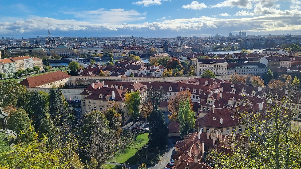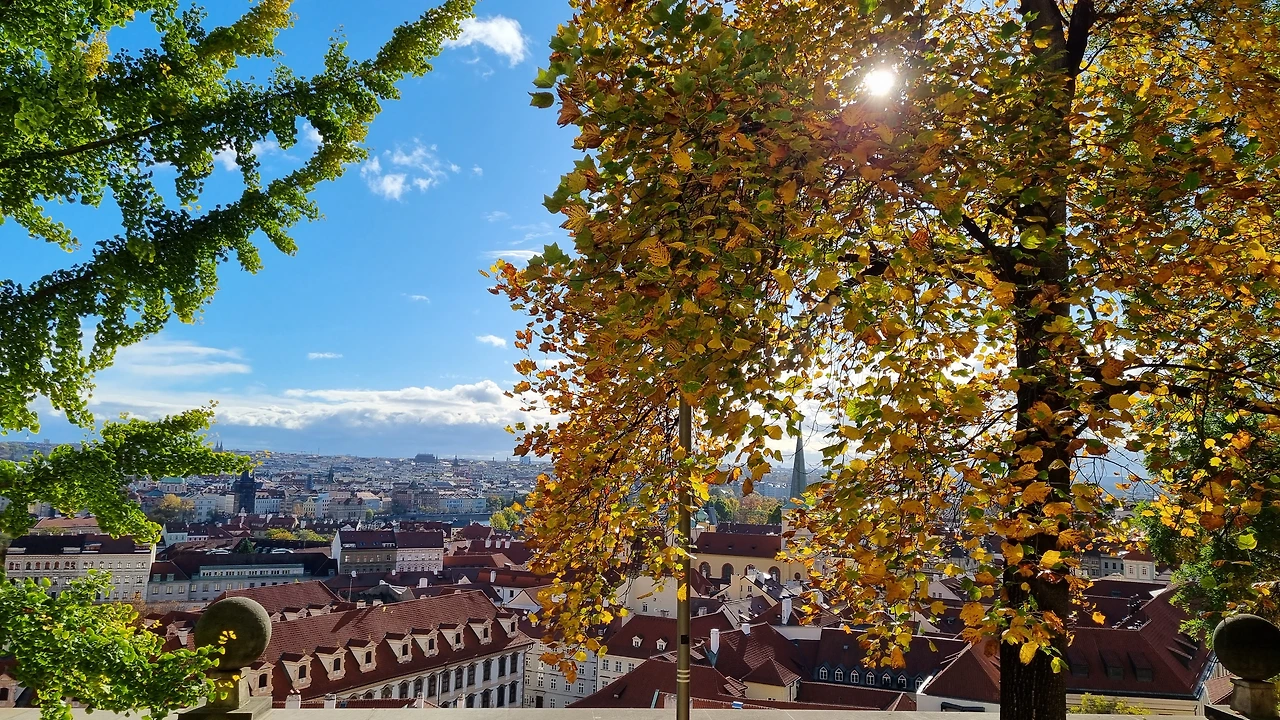 왼쪽으로는 붉은 지붕의 프라하 시내가 한 눈에 내려다보이는 풍경이 이어지고, 산책길에는 이름모를 나무들의 나뭇잎들이 노랗게 물들어서 단풍놀이를 제대로 하게 된다.